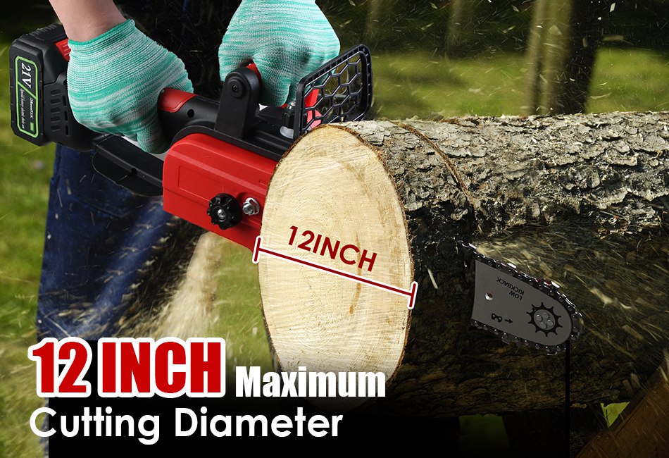 - 12” Chainsaw For Widely Use:Upgraded cordless chainsaw supports maximum 12inch cutting diameter,allowing you to tackle larger branches and logs with ease. Suitable for a wide range of application,including tree trimming,wood cutting,branch pruning,firewood preparation,landscaping projects in yard,garden,farm,ranch,forest and more.