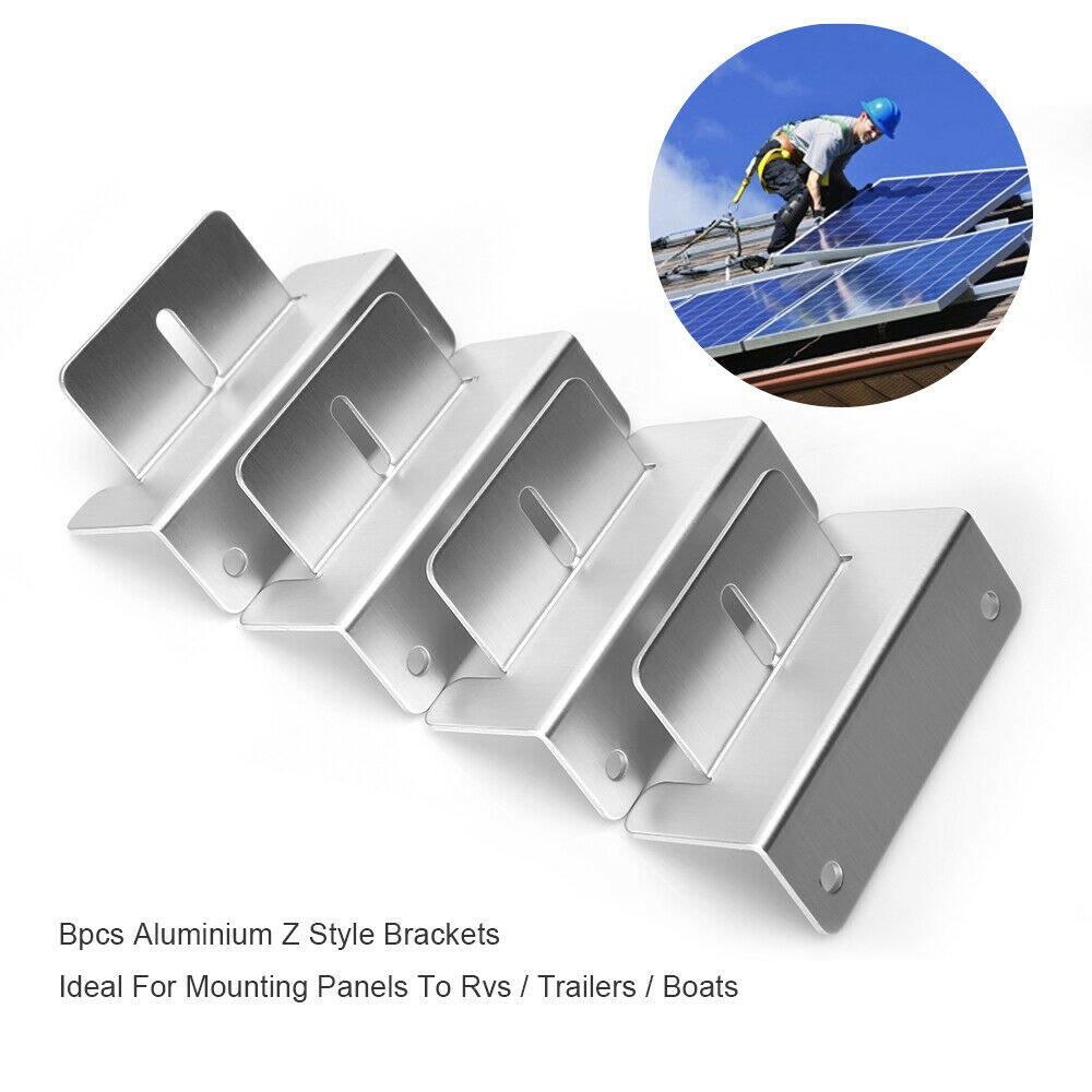 【Hohe Qualität 】Z Winkel Solarpanel Halterung Z Halterung Halterung für RV Dach Boote mit Schrauben und Muttern zu unterstützen. 【Einzigartiges Design】 Einfach zu bedienen, perfekt für unregelmäßige Oberflächen ,Vormontiert mit Schrauben und Unterlegscheiben sind alle Teile enthalten, die Sie zur Montage Ihrer Paneele benötigen. 【Materialien】Aus Aluminium, leicht, langlebig und korrosionsschutz. Im Gegensatz zur Edelstahl-Solarhalterung ist unsere korrosionsfreie Aluminiumlegierungshalterung LEICHTER, aber STÄRKER, bietet besseren Halt für Solarmodule und entlastet das Dach nicht. 【Weit Verbreitet】Montage auf Wohnmobilen, Anhängern, Booten, Freizeitfahrzeugen oder Yachten. Ideal für die Montage von Sonnenkollektoren. Spezifikationen: Z-Halterung aus Aluminiumlegierung 4-teiliges Set(Halterung + Schraubenpaket) Farbe:Silber Gewight: 300G Material: Aluminiumlegierung Paket: Halterungen aus Aluminiumlegierung ZBR-02 * 4 Sechskantschrauben M6x20 * 4 M6 Außensechskantmuttern * 4 M6 Unterlegscheiben * 4 M6 Federkissen * 4 selbstschneidende Schrauben aus Edelstahl ST5.5x38 * 8