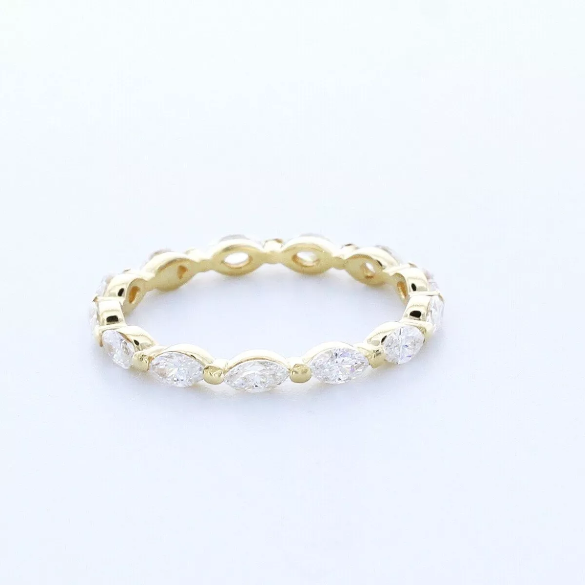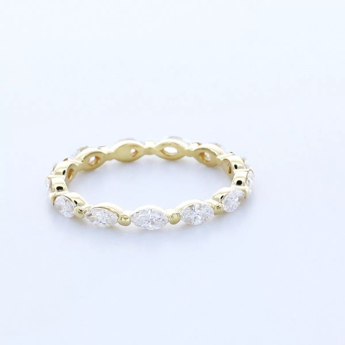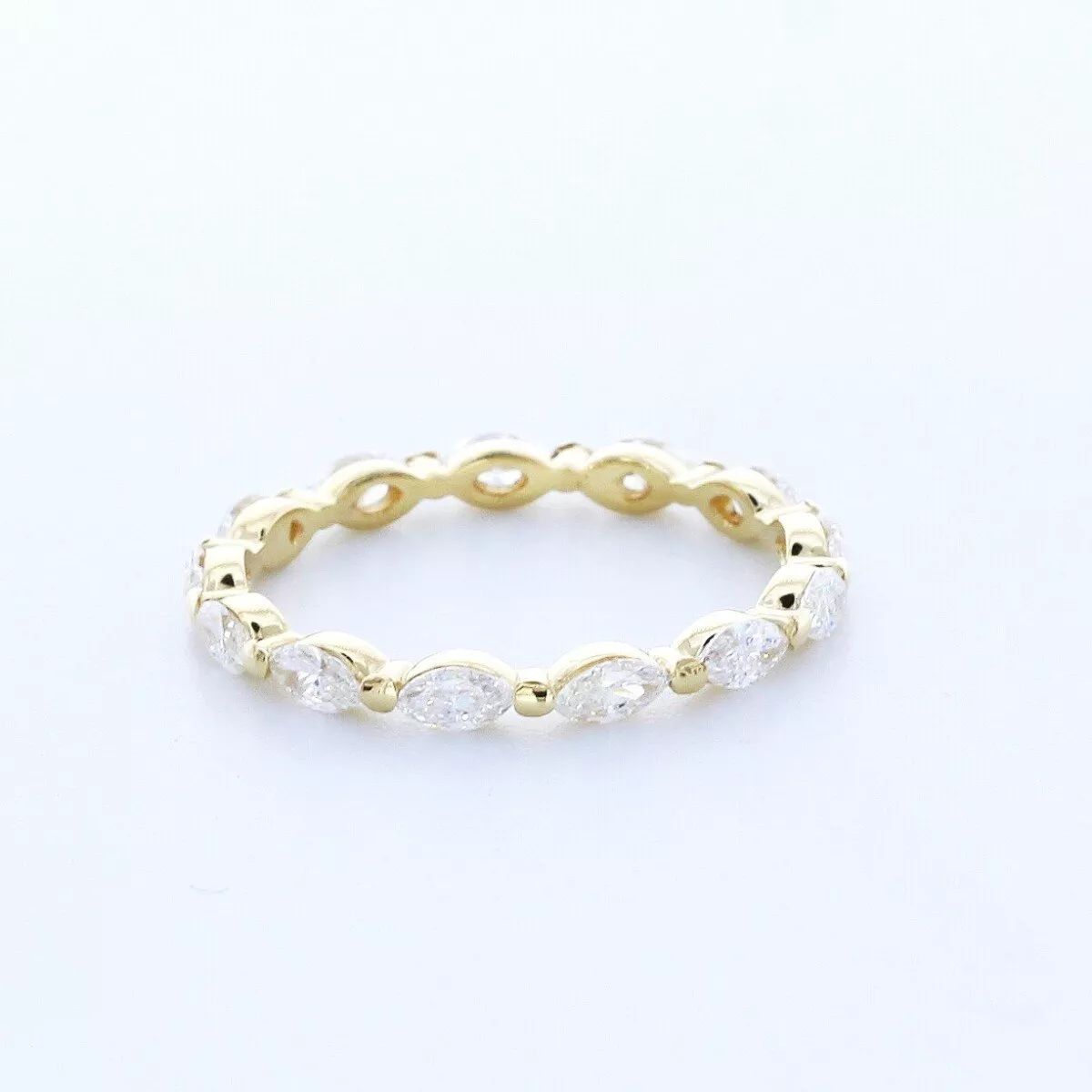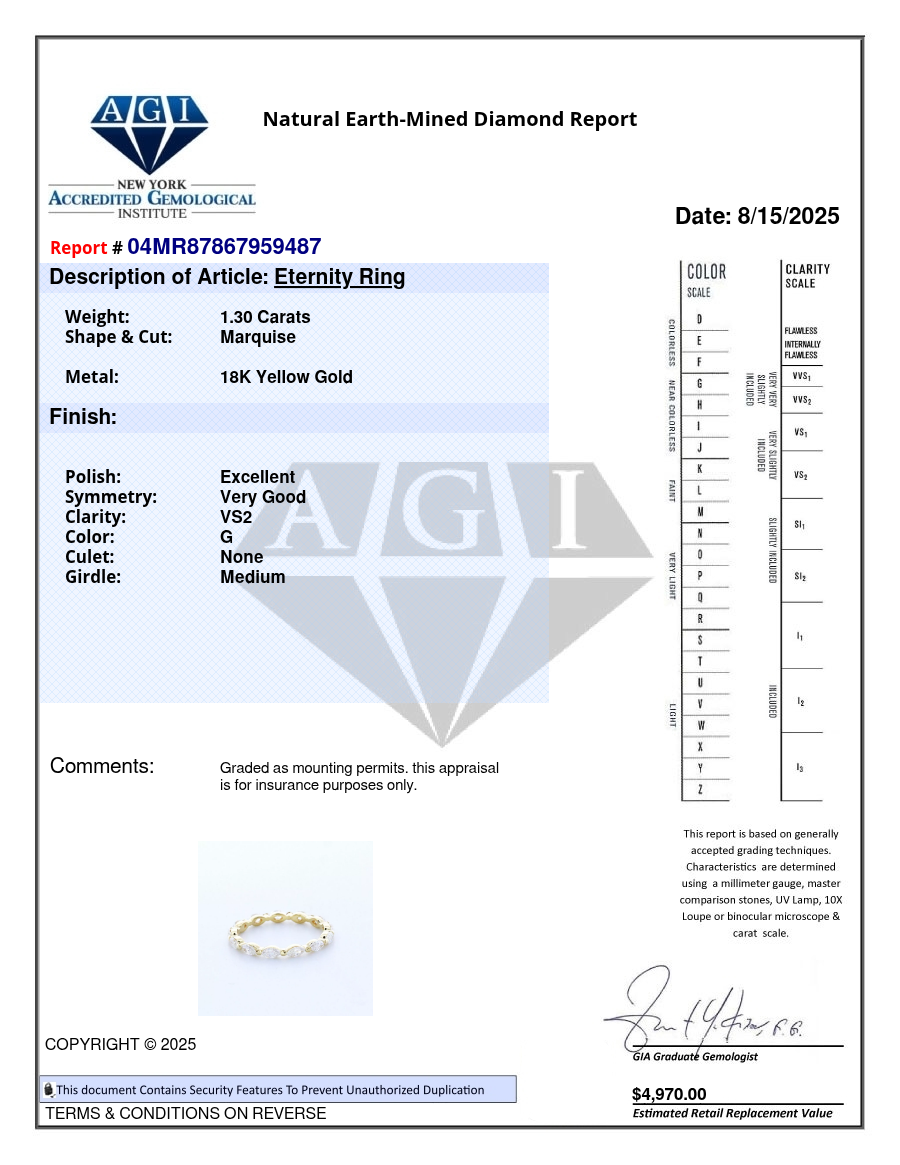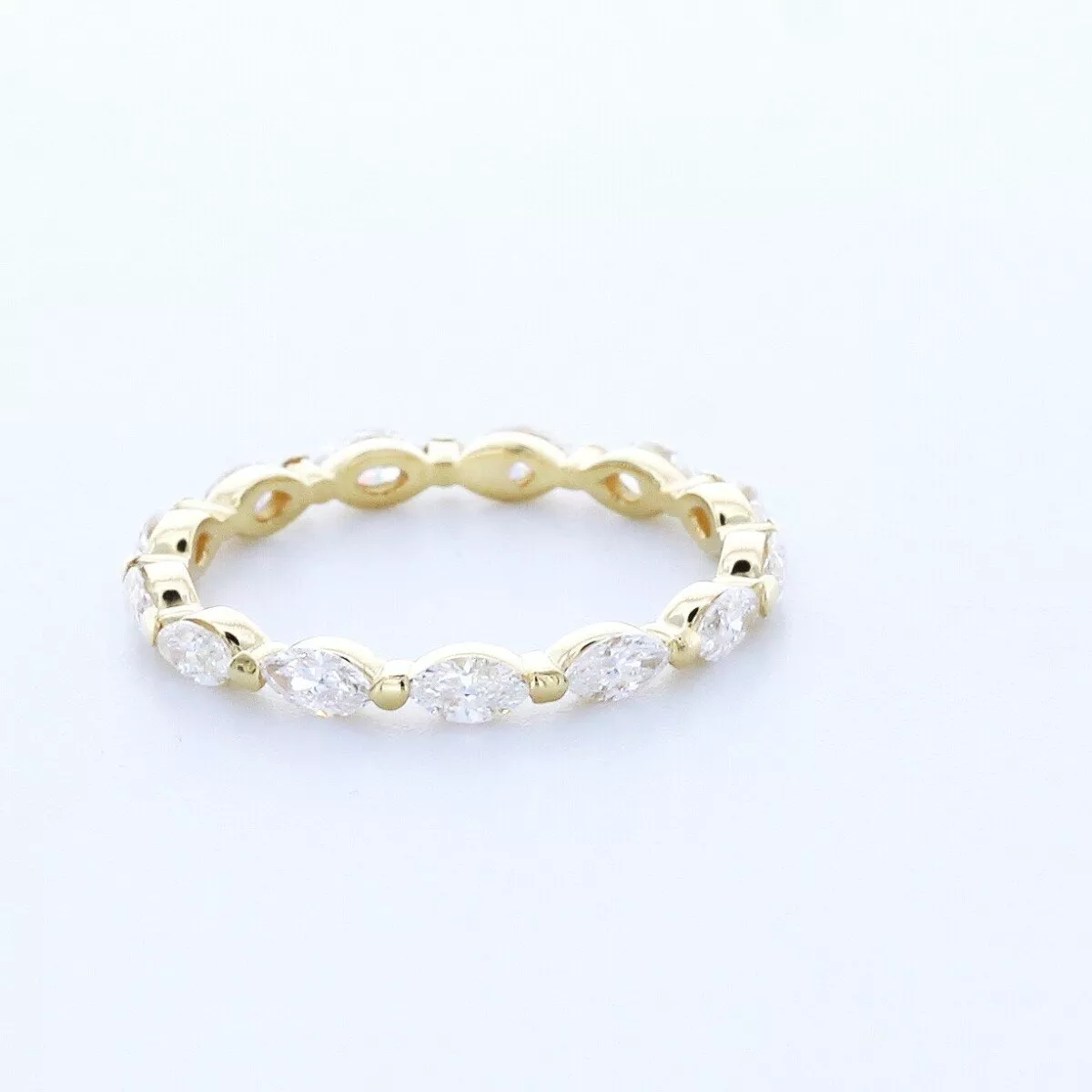 Solid 18K Yellow Gold Eternity Wedding Ring Classic AGI Cert 1.30 CT Marquise Natural Mined Diamond G VS2