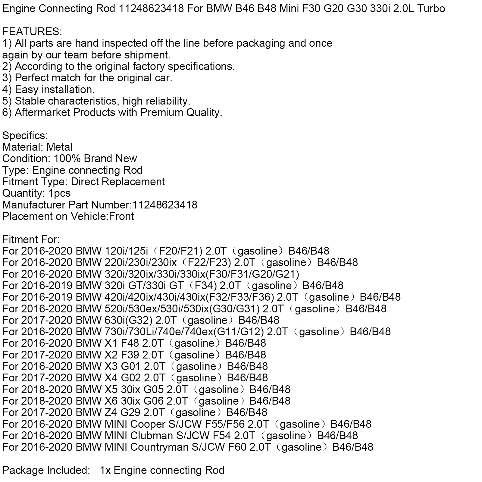 For 2016-2020 BMW X1 F48 2.0T(gasoline)B46/B48