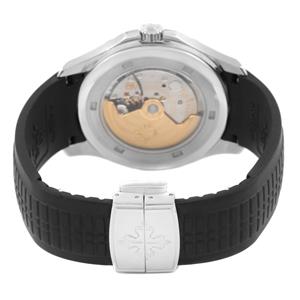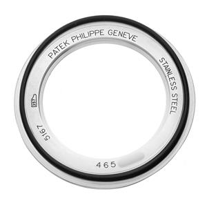 Stainless steel round case 40.0 mm. Transparent exhibition sapphire crystal caseback. Crown guards. Patek Philippe logo on the crown. |