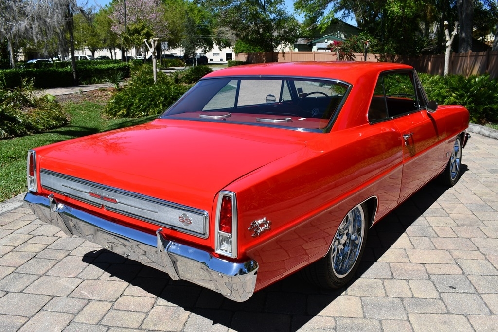 Remarkable Restoration  1966 Chevrolet Nova Powered by Professionally Built  Built 355 Small Block Engine w/ Roller Cam & Roller Rockers Muncie 4 Speed Transmission w/ High Performance Clutch Aluminum Heads Brodix Aluminum Intake MSD Ignition Long Tube Headers &