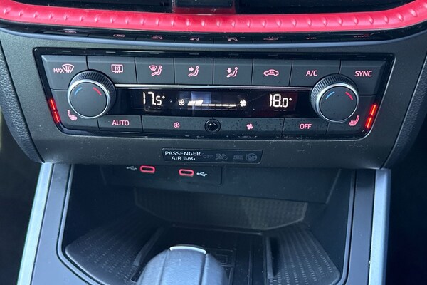 The SEAT Arona 1.0 TSI FR Sport DSG is a stylish and dynamic compact SUV, finished in a striking blue that perfectly complements its sporty design. Equipped with 18-inch Performance alloy wheels in Cosmo Grey Matt, this model delivers a confident road presence while maintaining impressive efficiency thanks to its Euro 6 compliant petrol engine and smooth DSG automatic gearbox. Inside, the FR Sport trim offers a premium and comfortable driving experience. Heated front seats provide added comfort on colder days, while air conditioning ensures a pleasant cabin temperature year-round. The interior is thoughtfully designed with high-quality materials and a driver-focused layout. Technology is at the heart of this Arona, featuring an intuitive satellite navigation system to keep you on track wherever you go. Bluetooth connectivity allows for seamless hands-free calls and audio streaming, paired with a clear and responsive radio system. Cruise control adds convenience on longer journeys, making motorway driving more relaxed and efficient. Externally, LED daytime running headlights enhance both visibility and modern styling, ensuring you stand out on the road. Rear parking sensors make maneuvering in tight spaces simple and stress-free. With its blend of sporty styling, advanced technology, and everyday practicality, this SEAT Arona FR Sport is an excellent choice for drivers seeking comfort, performance, and reliability in one versatile package. This vehicle is part of the Motor...