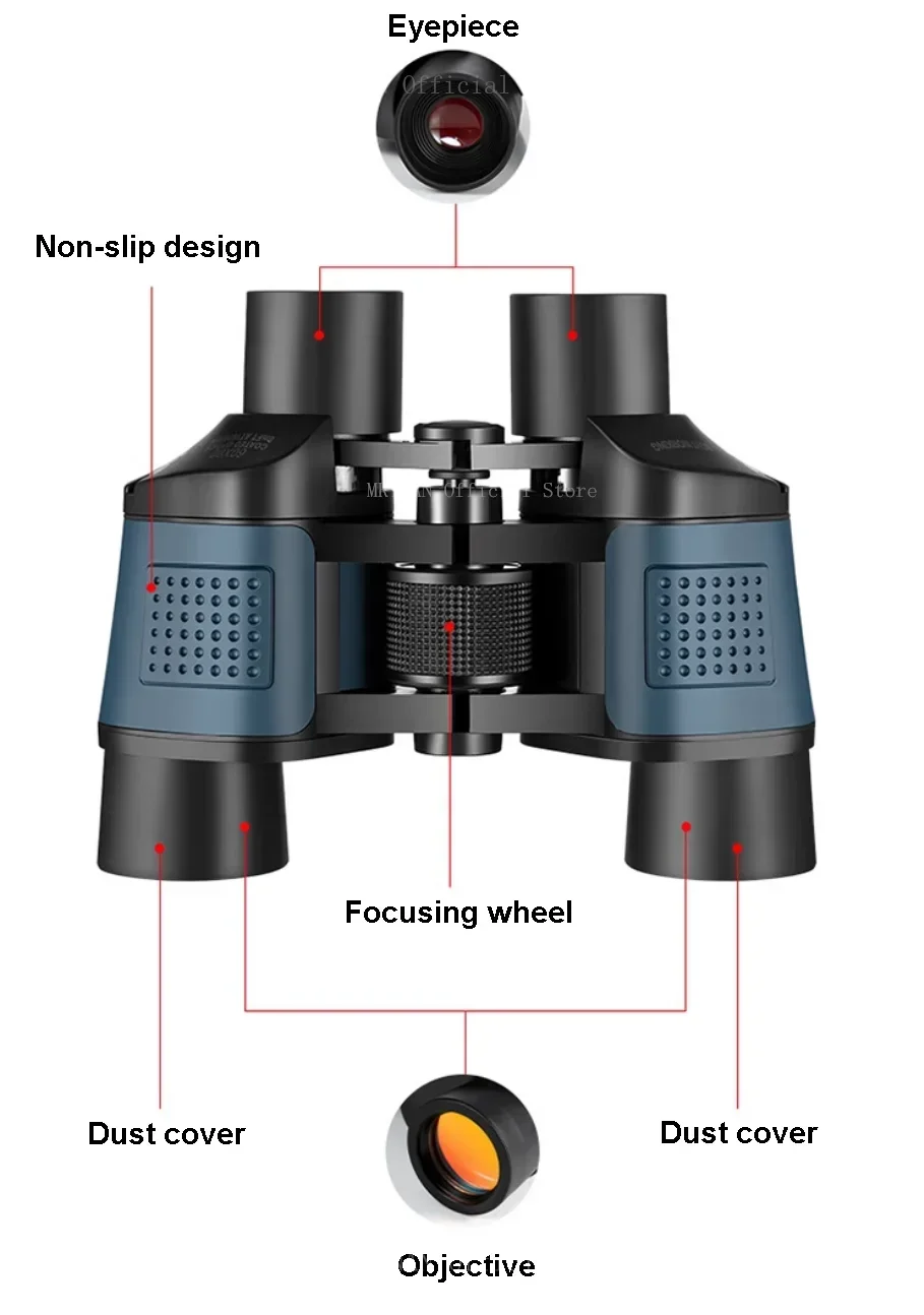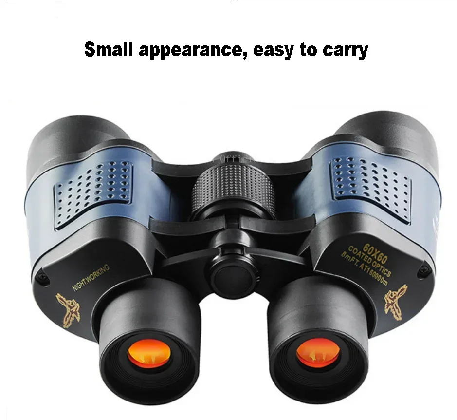 Binoculars 60X60 Long Range Bak4 Prism HD High Power Telescope Optical Glass Lens Hiking Travel Portable for Hunting Sport Scope Specification: Material: plastic Color:Black Size:18x14.5x6cm/7”x5.7”x2.36” Magnification: 60X Eyepiece diameter:16mm/0.6” Objective diameter:35mm/1.37” Field of View: 8mftat/160000m Objective and green film:yes Built-in coordinates:yes Night vision:support Distance:5-3000m Exit Pupil Diameter: 5.0mm Prism: BAK4 Sheath: rubber skin Angle: 8.2 degree Minimum focusing distance: 5.0m Horizon: 17mm Relative brightness: 25.00 Water fog: yes Perfect tool for Sightseeing, Watching Match, Concert and Hunting Package includes: 1 x Telescope 1 x Carry Bag 1 x Strap 1 x Lens Cap 1 x Eyepiece Cap 1 x Lens cloth 1 x User manual