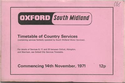 OXFORD SOUTH MIDLAND BUS TIMETABLE BOOK COUNTRY SERVICES NOV 1971