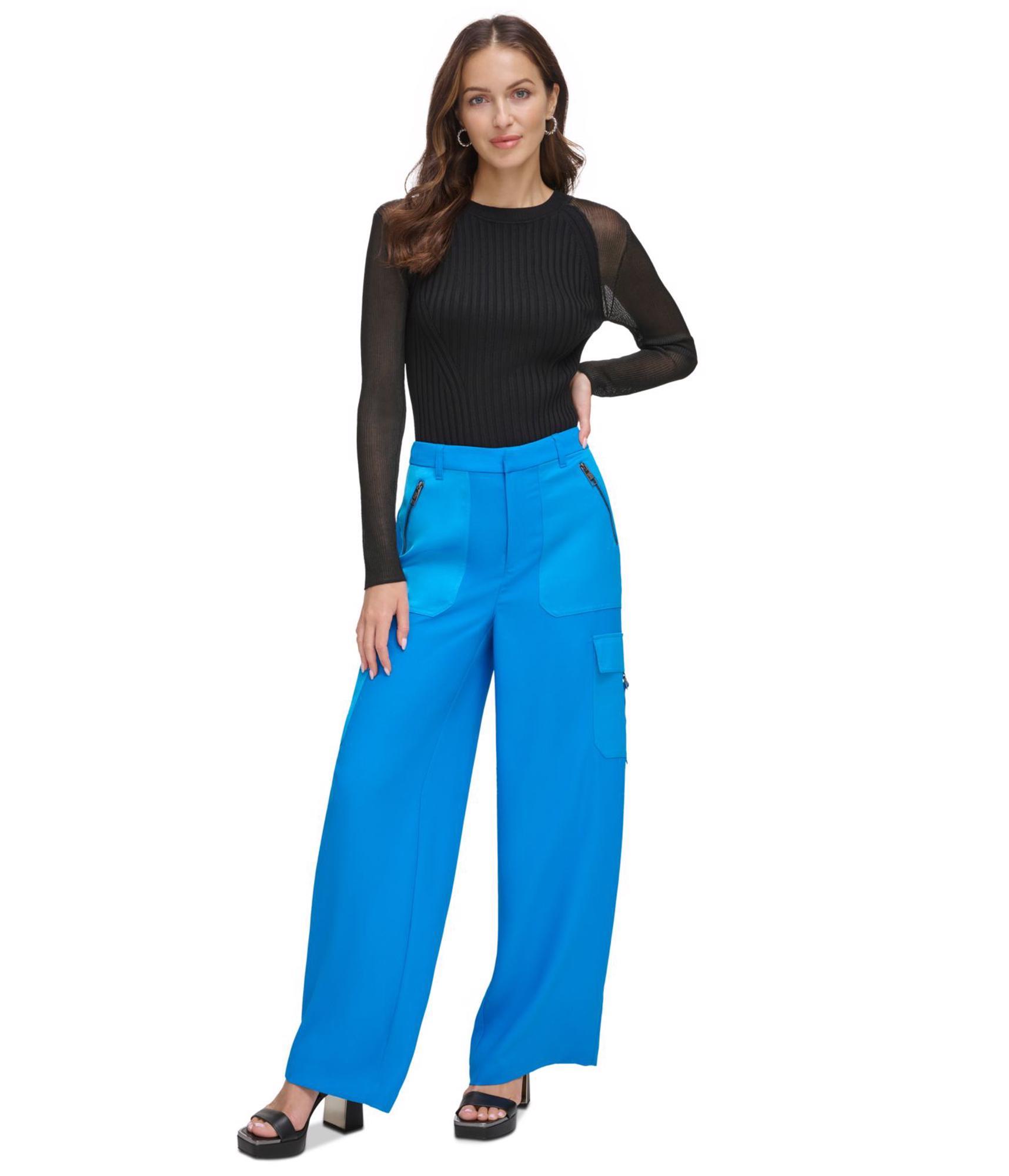 Elevate your everyday style with these DKNY cargo trousers, designed for the modern woman who values both fashion and function. The smooth, medium-weight fabric drapes beautifully, creating a flattering wide-leg silhouette that moves with you. Featuring a comfortable mid-rise waist and a secure zipper closure, these trousers offer a perfect blend of sophisticated tailoring and utilitarian details. Slip them on for a weekend brunch or a casual day out, and experience effortless chic. The distinctive cargo pockets add a touch of urban edge, making them a versatile addition to any wardrobe.