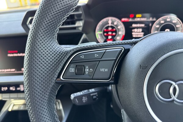 A perfect hatchback for your daily commute to work, the A3 Sportback powered by a 204 PS plug-in hybrid drivetrain with smooth S tronic automatic transmission. It offers impressive fuel economy alongside responsive accelerationideal for both city driving and longer journeys, with up to 81 miles of electric range in EV mode. This plug-in hybrid comes fully equipped for charging with domestic and public cables included, plus a Type 2 socket for AC charging. Finished in the desirable S line specification, this A3 stands out with 18-inch 5-twin-spoke alloy wheels in graphite grey with a gloss turned finish, S line styling, sporty bumpers, and a sleek roof spoiler. LED headlights with dynamic rear indicators and privacy glass complete the sharp, modern exterior look. Inside, the cabin is both high-tech and comfortable, featuring Audi Virtual Cockpit Plus and MMI Navigation Plus with a high-resolution 10.1-inch touchscreen. Audi Connect Navigation and Infotainment Services keep you seamlessly connected, while the Audi Smartphone Interface and wireless charging via Audi Phone Box Light ensure convenience on every journey. The Audi Sound System provides excellent audio quality throughout. Comfort is enhanced with heated front sports seats, 4-way lumbar support, and 3-zone deluxe automatic air conditioning, making every drive enjoyable for all passengers. The flat-bottomed 3-spoke leather multifunction steering wheel with paddle shifts adds a sporty feel, complemented by aluminiu...