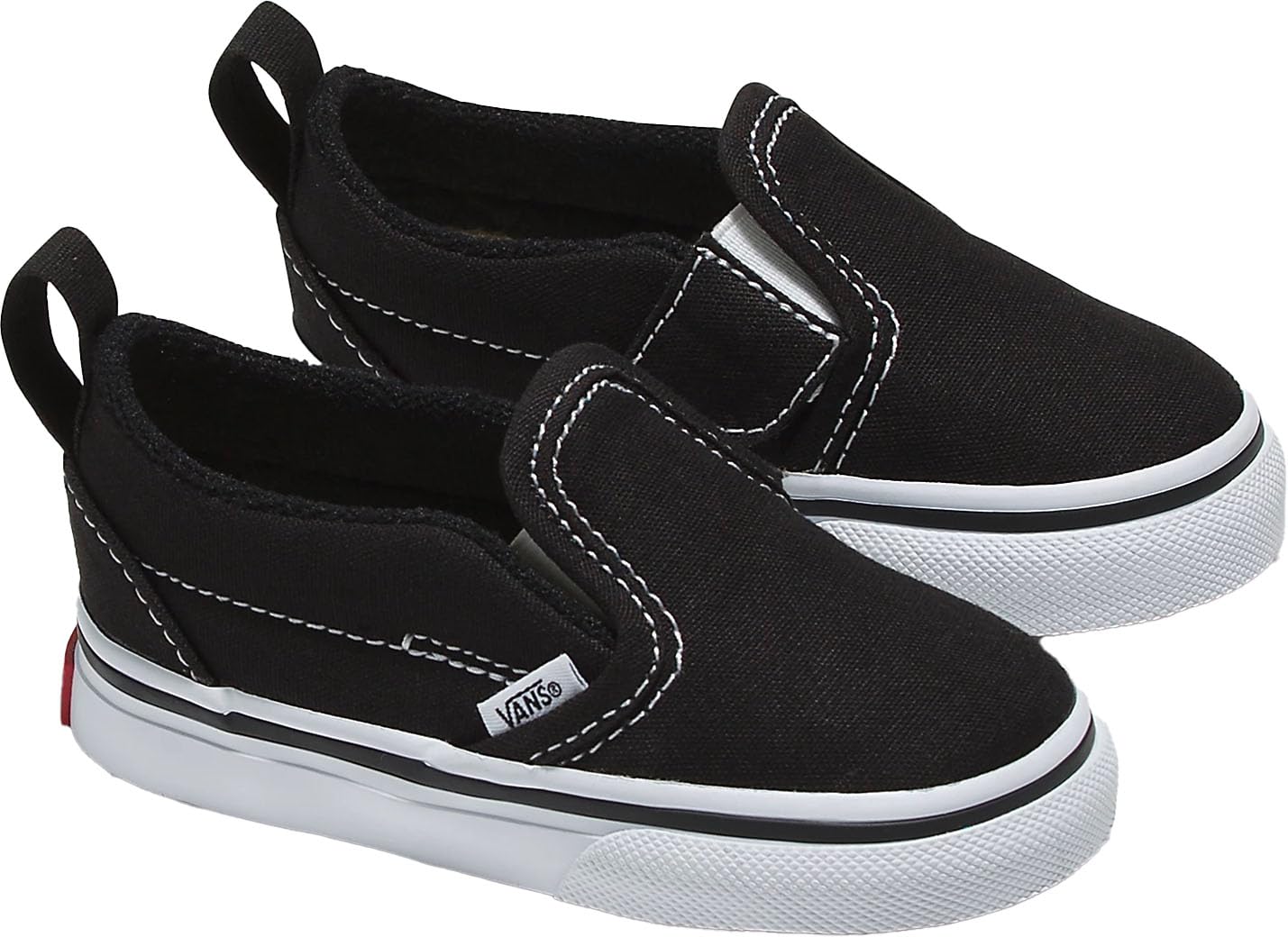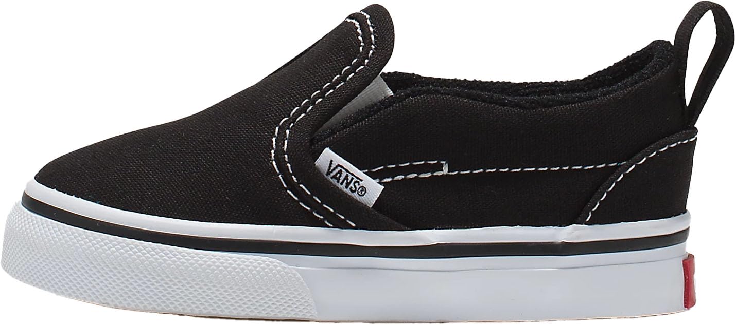 | Vans - Toddler Slip-On V Shoes with Fastner, Color (Canvas) Black/True White, Size: 6.5 M US Toddler |