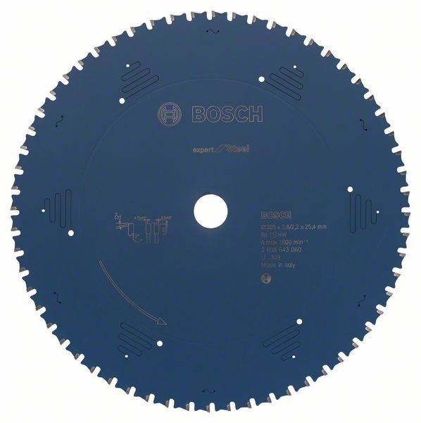 Lame de scie circulaire Expert for Steel pour scies à onglets, radiales et à métaux (Mitre Dry Cutter). Diamètre extérieur : 305 mm, alésage : 25,4 mm, largeur de coupe : 2,6 mm, épaisseur de lame : 2,2 mm, nombre de dents : 60, forme des dents : TR-F, résultat de coupe : 4.0, angle de serrage en degrés : 0.0, angle de dégagement : 12.0. Très longue durée de vie. Pour des coupes nettes dans l’acier.