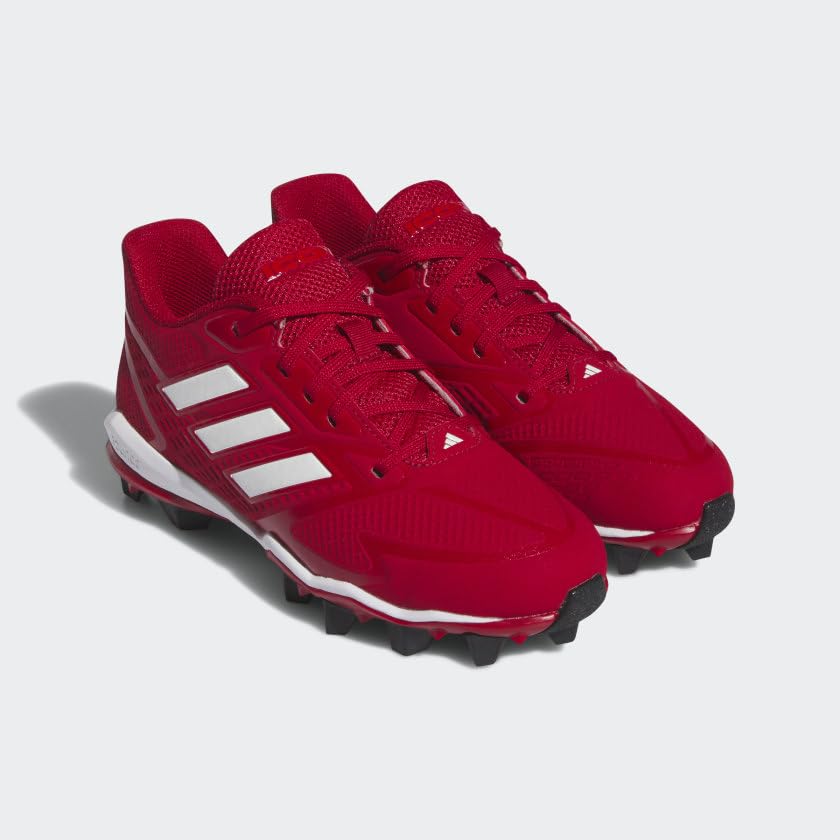 Don't let your power at the plate go to waste. Turn those long singles into doubles in these adidas baseball cleats. They have a Bounce midsole for a lightweight, springy feel all game long. Specifically placed studs on the outsole give you the traction you need to power through and slide into second base to give your team that power boost. Made with a series of recycled materials, this upper features at least 50% recycled content. This product represents just one of our solutions to help end plastic waste.