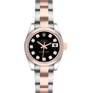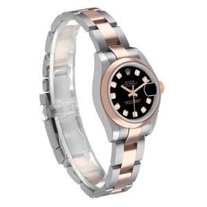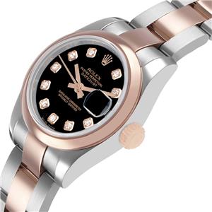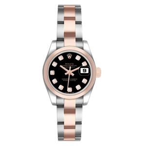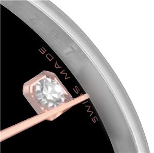 Black dial with original Rolex factory diamond markers and rose gold hands. Date calendar at the 3 o'clock aperture. |