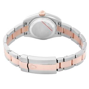 Stainless steel oyster case 26.0 mm in diameter. Rolex logo on the 18K rose gold crown. |