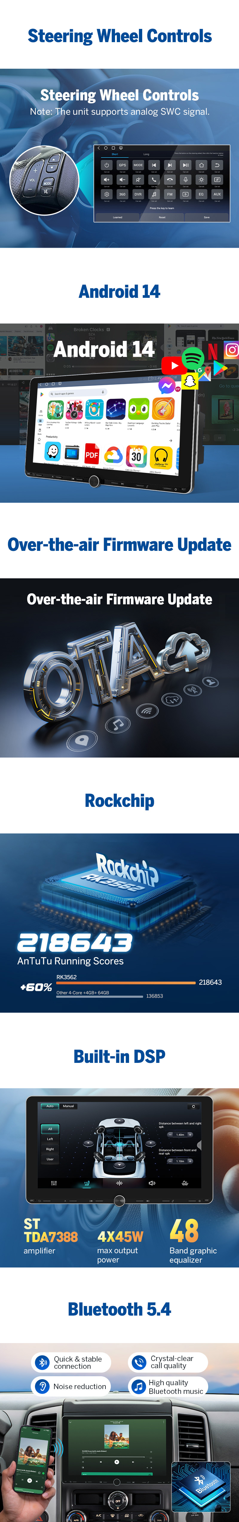 Upgrade your car with the UX7A Plus, a next-generation Android 14 head unit designed for universal compatibility, premium audio, and safer, smarter driving. Perfect for daily commutes, long road trips, or connected driving, it offers OTA updates, and factory-level reliability.