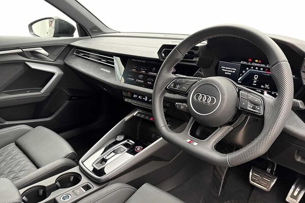 Turn heads and elevate every drive with this Approved Used Audi S3 Sportback Black Edition TFSI, finished in striking Mythos Black metallic. Combining aggressive styling with everyday practicality, this high-performance hatchback delivers a perfect balance of power, precision, and premium comfort. The exterior makes an immediate statement, with the Black Edition styling enhancing its sporty character through gloss black detailing, distinctive alloy wheels, and bold S-specific design cues. The sleek Sportback profile adds versatility without compromising its dynamic presence on the road. Inside, the cabin is crafted with Audis signature attention to detail, featuring high-quality materials, supportive sport seats, and a driver-focused layout. The Audi Virtual Cockpit and advanced infotainment system keep everything at your fingertips, while seamless smartphone integration and intuitive controls ensure a connected and enjoyable driving experience. Under the bonnet, the S3s turbocharged TFSI engine delivers exhilarating performance, paired with Audis renowned quattro all-wheel drive system for outstanding grip and confidence in all conditions. Sharp handling and rapid acceleration make every journey engaging, whether on winding roads or daily commutes. As an Approved Used Audi, this vehicle has been thoroughly inspected by trained technicians and comes with the reassurance of warranty and roadside assistance, giving you complete peace of mind. A refined yet thrilling per...