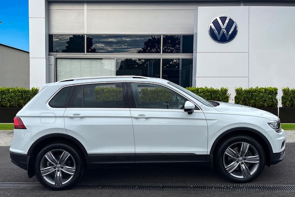 Command space, style, and comfort with this impressive Volkswagen Tiguan Allspace 2.0 TDI 190 4Motion SEL, finished in crisp Pure White solid paint. Designed for families and adventurers alike, the Tiguan Allspace combines spacious seven-seat versatility, refined luxury, and advanced technology, making every journey effortless and enjoyable. On the outside, the SUV is equipped with 19"" Victoria alloy wheels, striking LED headlights with Dynamic Light Assist, and a panoramic sunroof that floods the cabin with natural light. Practical touches like a swivelling tow bar and variable-height boot floor ensure youre ready for both everyday errands and weekend adventures. Step inside to experience a premium cabin with Vienna leather upholstery, heated front seats, power-adjustable lumbar support, and memory feature for the drivers seat. Thoughtful interior touches, including foldable front passenger backrest, drawer storage under the front passenger seat, and leatherette door inserts, provide comfort, convenience, and sophistication for all occupants. Technology and connectivity are at the heart of the Tiguan Allspace. Enjoy the Discover Navigation system with 8.0"" touchscreen, Car-Net App-Connect and Media Control, USB interfaces, and online connectivity, keeping you informed, connected, and entertained on every drive. The Technology Pack enhances driving ease with features like Adaptive Cruise Control (ACC), Lane Assist, Front Assist with autonomous emergency braking, auto-dim...
