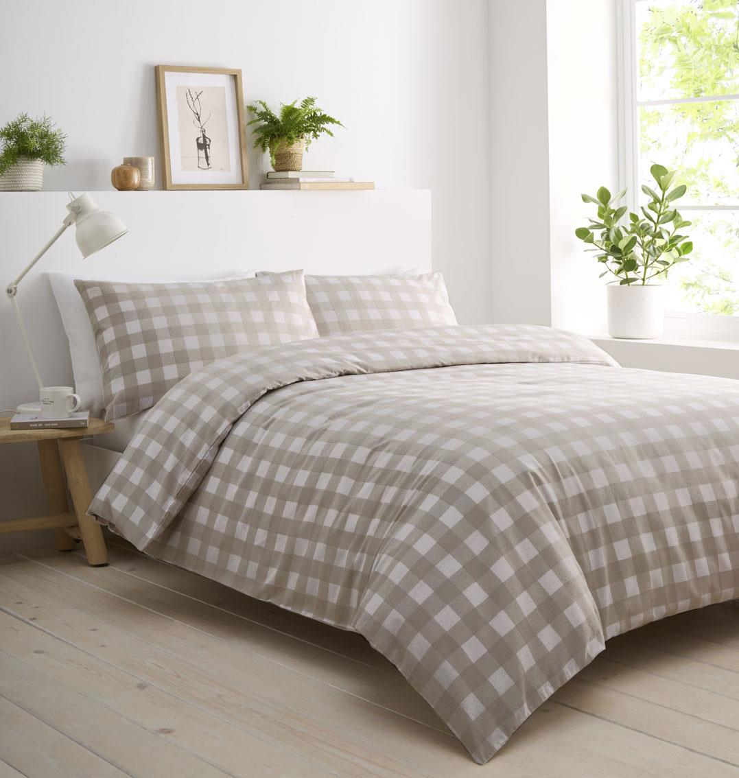 Gingham Duvet Cover Bed Set Check Squares Bedding Natural Stone or Sage Green