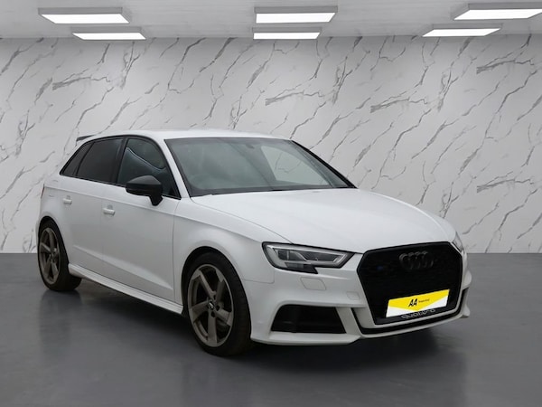 This 2018 Audi S3 TFSI Black Edition boasts exceptionally low mileage for its age, having covered just 53,104 miles. This Euro 6 compliant model features a powerful 2.0 litre petrol engine paired with a four wheel drive drivetrain, ensuring excellent performance and grip. The MOT remains valid until August 2026, offering peace of mind for the next owner. Notable features include a premium Bang and Olufsen sound system for an immersive audio experience, rear parking sensors to aid manoeuvrability, and striking LED headlights with dynamic rear indicators for enhanced visibility and a distinctive look. Inside, youll appreciate the comfort of heated front seats and the convenience of an auto dimming rear view mirror that automatically activates headlights with the light and rain sensor. The Audi S3 TFSI Black Edition offers a compelling blend of performance and practicality. Its impressive acceleration, reaching 0-60mph in just 4.6 seconds, sets it apart from many other vehicles in its class. This performance is complemented by a generous boot space, making it a versatile choice for everyday use and longer journeys. The combination of its advanced technology, refined interior, and dynamic driving capabilities makes this Audi S3 a standout option for those seeking a premium driving experience. Part Exchange Welcome. All Majors Cards Accepted. We Have Finance Available. A Wide Range of Warranties. We Also Offer Low Cost, Nationwide Delivery Available From £1.50 a Mile. **Every endeavour is made to ensure specifications and descriptions are correct. Due to model changes specification may vary. Phone for details. MPG figures shown are government official figures.**.Fine Nappa Leather - S Embossed Super Sports Seats - Black with Rock Grey Stitching, Ibis White, 18in Alloy Wheels - 5-Arm Turbine Design in Magnesium Look - Diamond Cut Finish, 2 x USB Charging Ports and 1 x AUX-IN, 6-Airbag System with Knee Airbag for Driver, Aluminium Interior Elements, Anti Theft Locking Wheel Bolts, Anti-Theft Alarm, Audi Beam, Audi Connect Infotainment Services - 3 Month Trial, Audi Drive Select, Audi Hill Hold Assist, Audi Smartphone Interface, Auto-Dimming Rear-View Mirror with Light and Rain Sensor, Bang and Olufsen Sound System, Black Styling Package, Bluetooth Interface, Brake Calipers Painted in Black with S3 Logo at the Front, CD Drive, Cloth Headlining in Black, Colour Drivers Information System - DIS, Cruise Control, DAB Digital Radio, Door Mirrors - Black Housing, Door Mirrors - Electrically Adjustable and Heated with Integrated LED Side Indicators, Dual-Zone Electronic Climate Control, ESC - Electronic Stabilisation Control inc ABS - ASR and EDL, Electric Windows - Front, Electromechanical Parking Brake, Email and Text Messages can be Displayed on your Vehicles MMI, Exhaust Tailpipe - Dual-Branch Oval Twin with Chrome Finish, First Aid Kit and Warning Triangle, Front Centre Armrest, Front and Rear Floor Mats, Headlights Washers, Heated Front Seats, Heated Windscreen Washer Jets, ISOFIX Child Seat Mounting and Top Tether, Illuminated Door Sill Trims with S Logo, Inlays - Matt Brushed Aluminium, Instrument Dials with S3 Logo, LED Headlights with LED Rear Lights and Dynamic Rear Indicators, LED Interior Light Package, Lashing Points in Luggage Compartment, MMI Navigation - SD Card Based, MMI Radio Plus with 7in Electrically Retractable Colour MMI Screen, Non-Smoking Package, Online Media Streaming - Audi MMI Connect App Required, Pedals in Stainless Steel, Privacy Glass, Progressive Steering, Rear Parking Sensors, Remote Central Locking with 2 Fold Away Keys, S Design Body Styling, S Sport Suspension, Seat Belt Monitoring, Space Saver Spare Wheel, Split Folding Rear Seat Bench - 60-40 or Fully, Steering Wheel - 3-Spoke Leather-Multifunction-Flat Bottomed-Shift Paddles, Storage Compartments in the Door Side Trims-Centre Console-Under Drivers Seat, Storage Package, Tool Kit and Jack, Tyre Pressure Warning Light