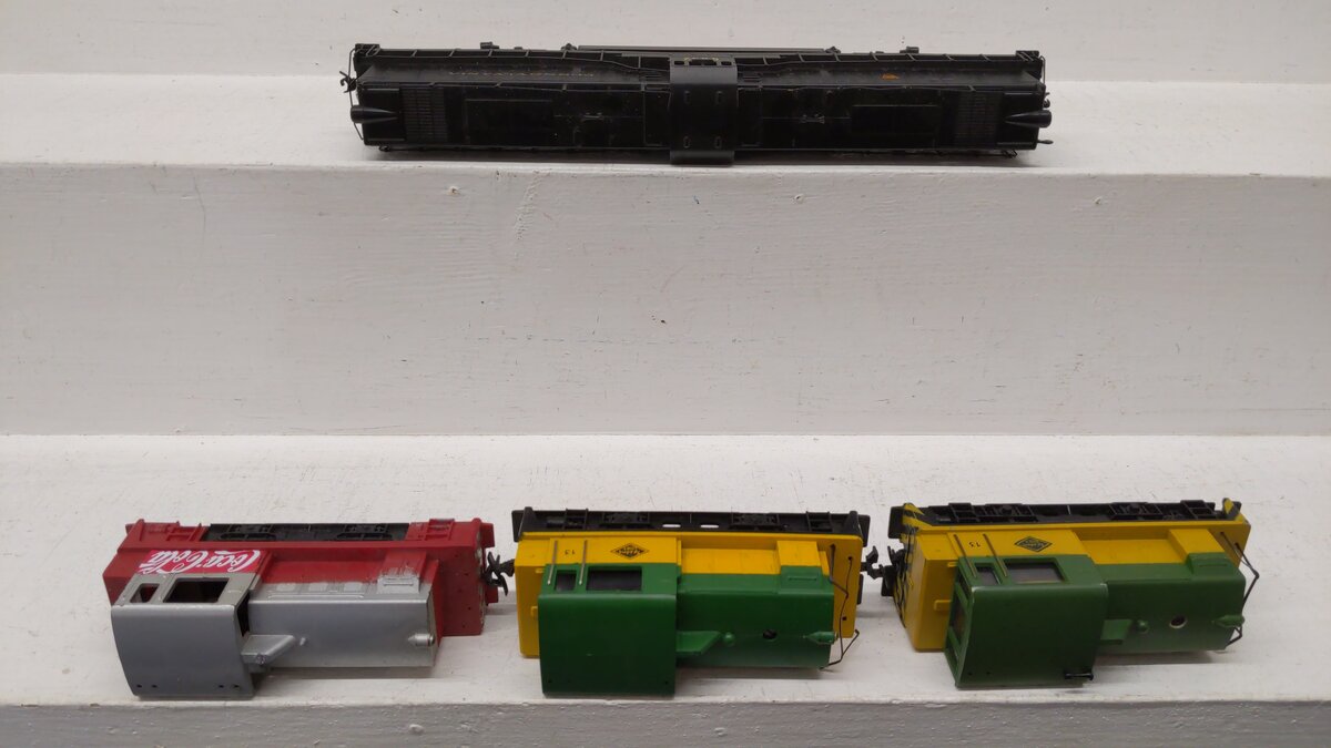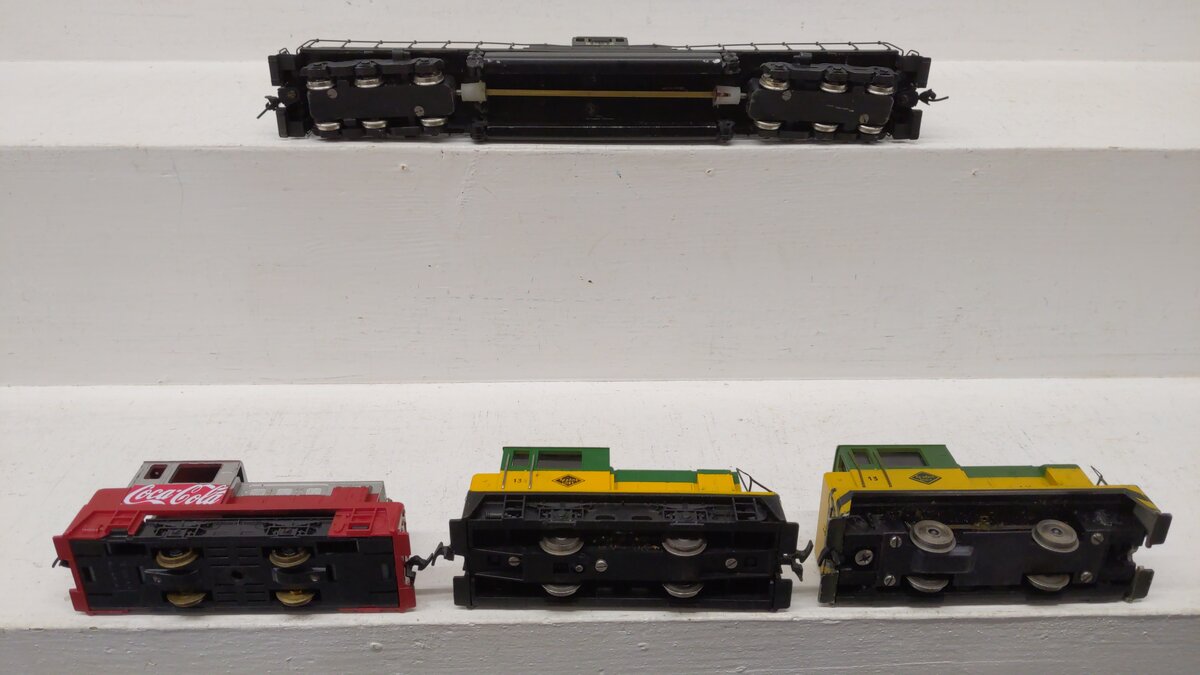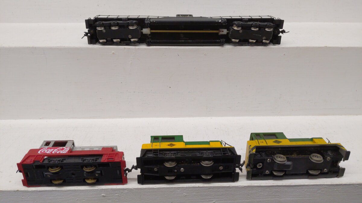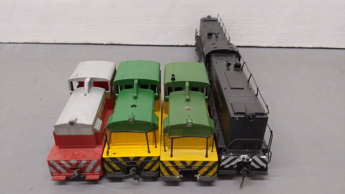 Here we have a Tyco & Others Assorted Diesel Locomotives: [4]. These items feature a plastic body construction as well as metal and brass wheels and assorted couplers.