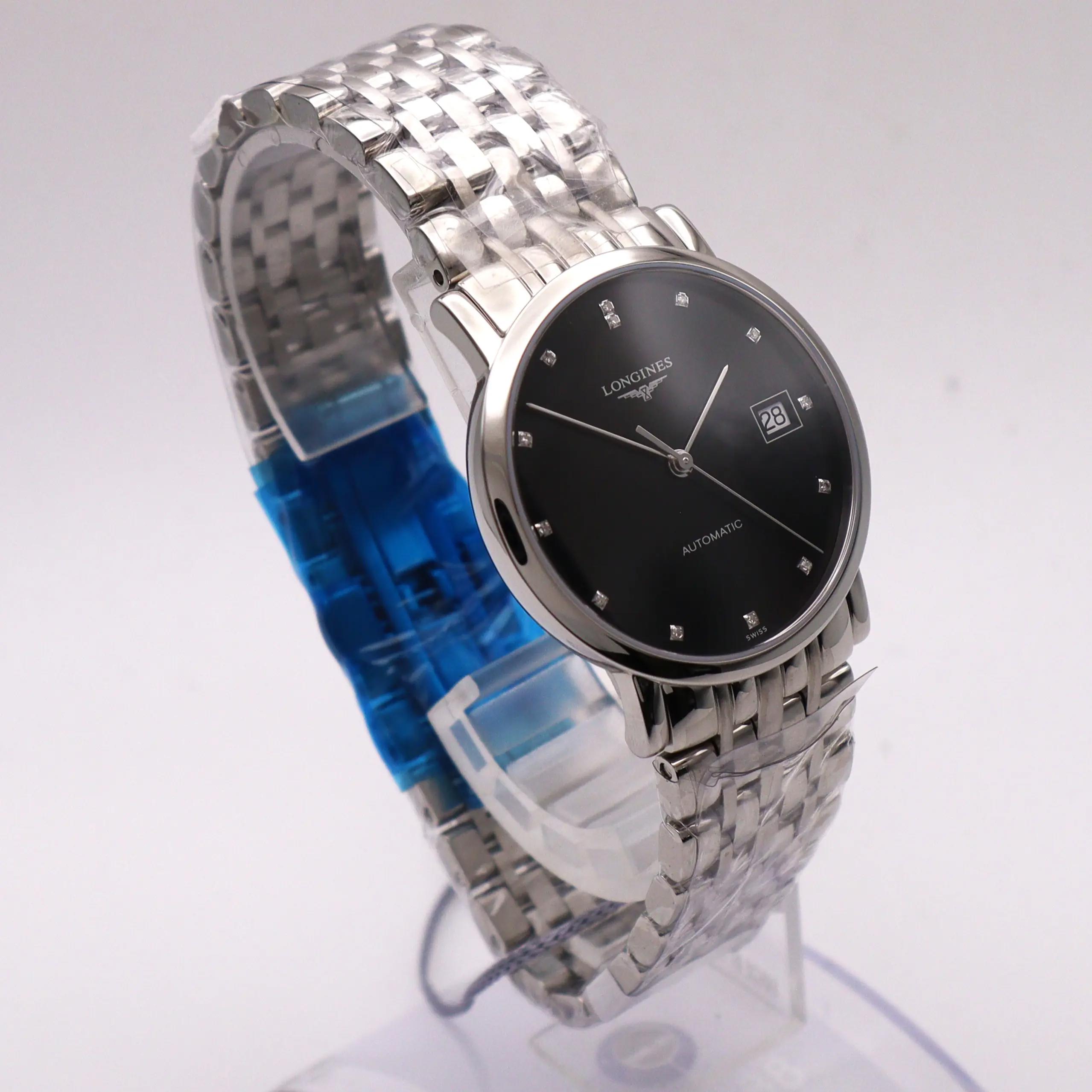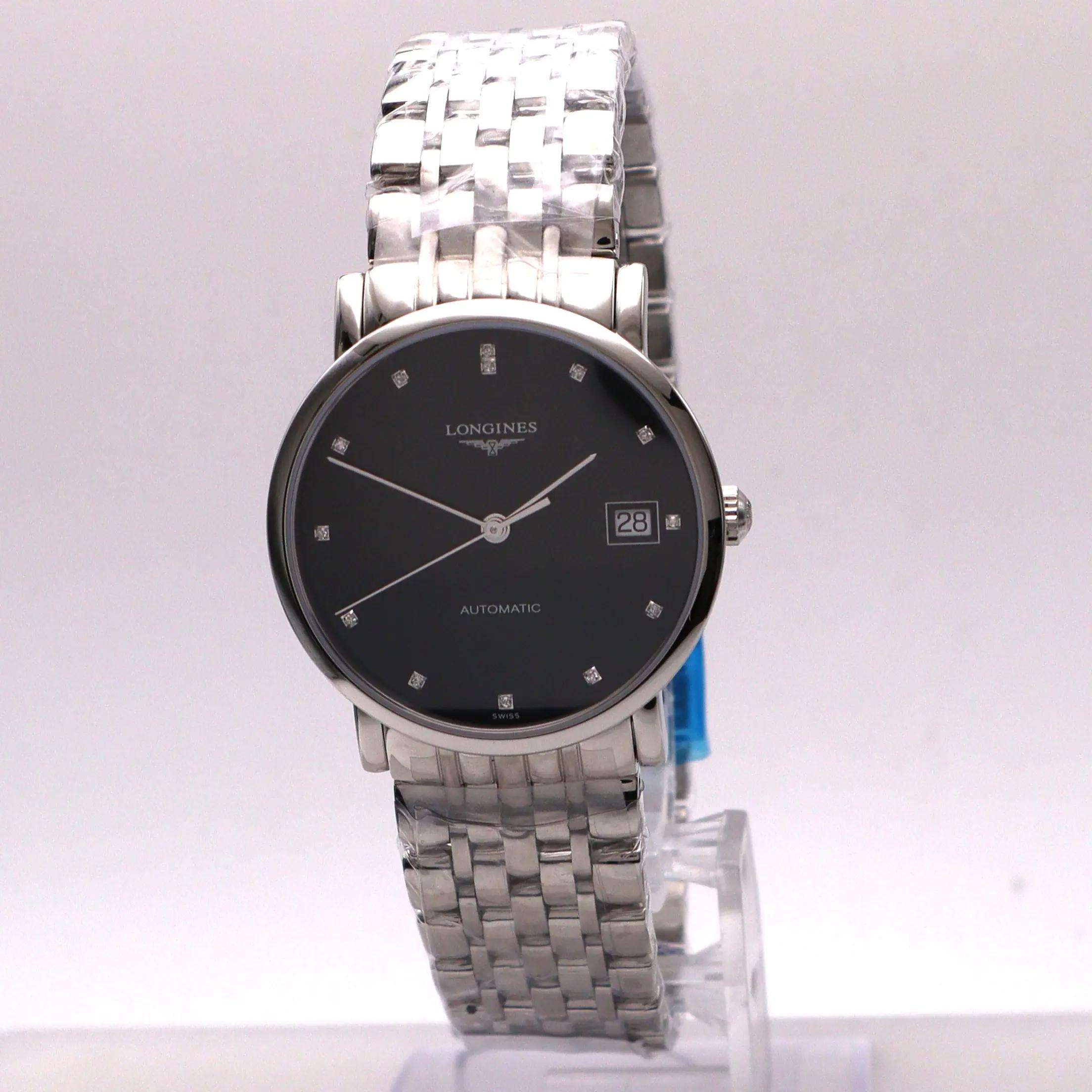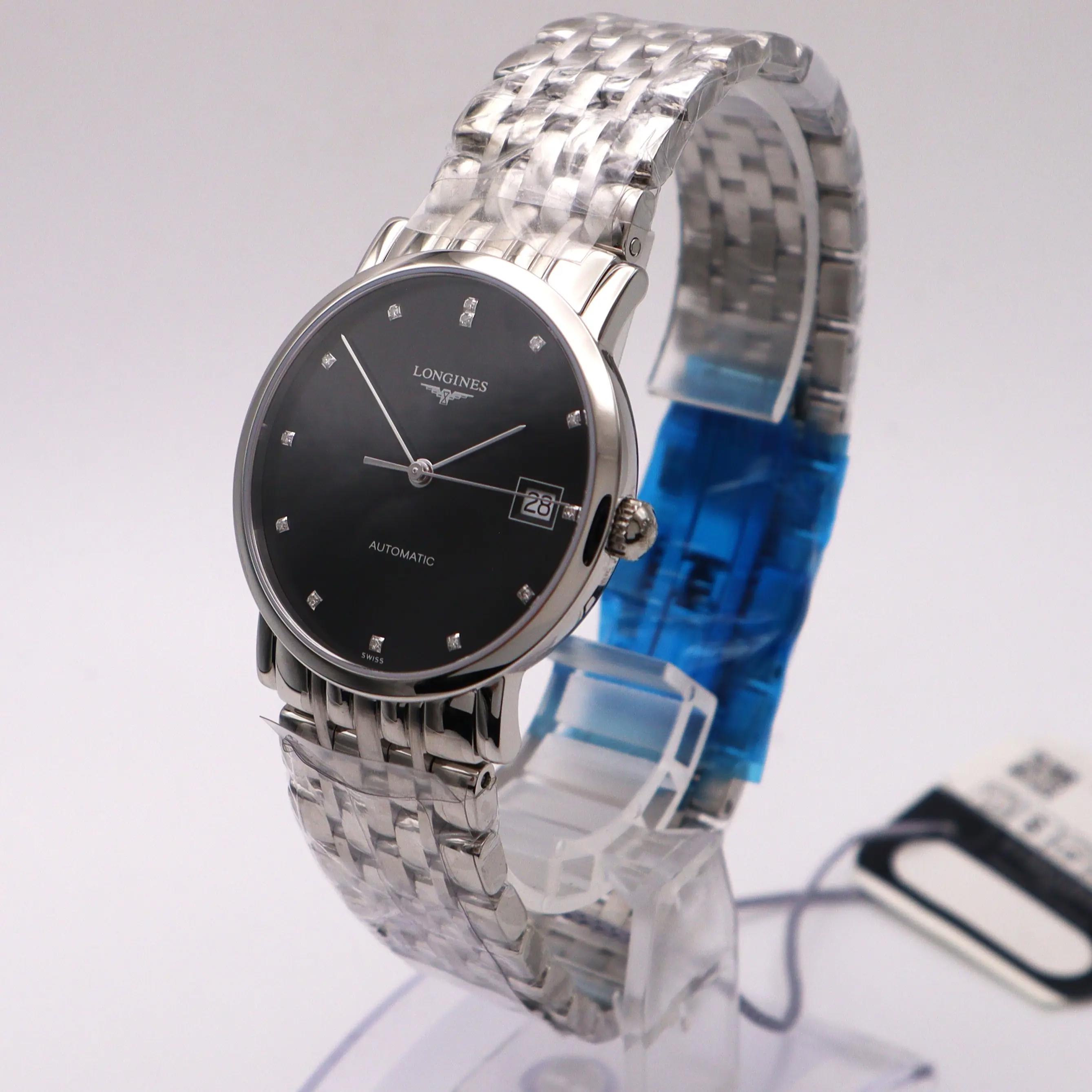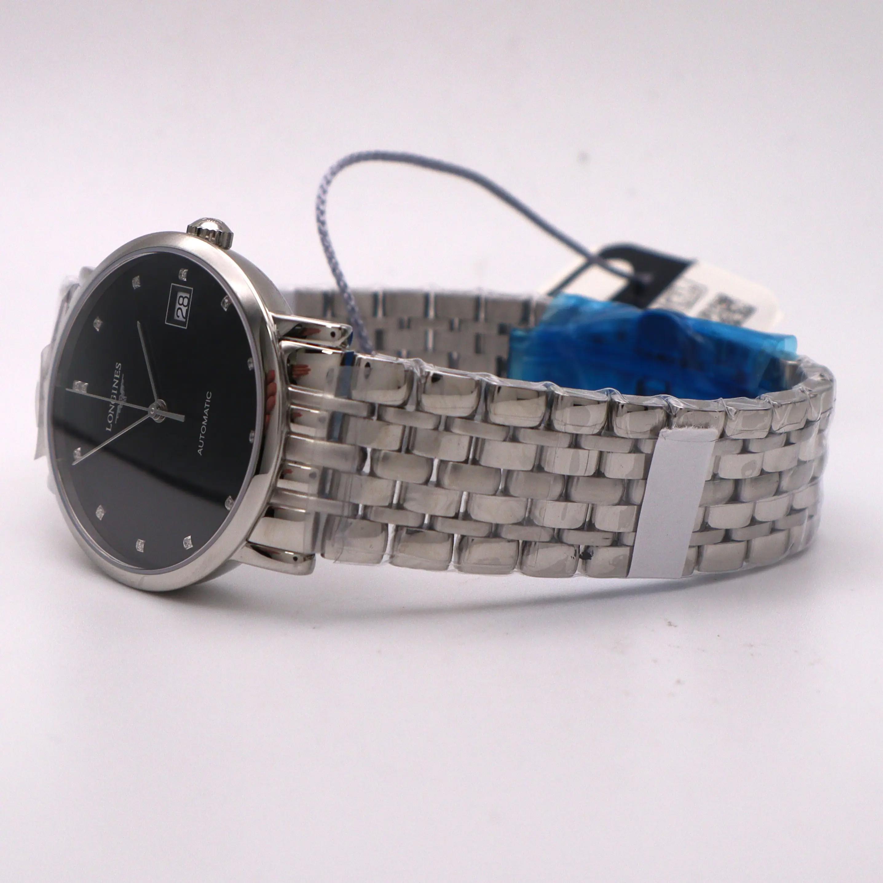 Longines Elegant Steel Black Diamond Dial Automatic Ladies Watch L4.809.4.57.6