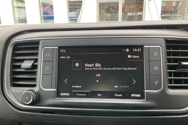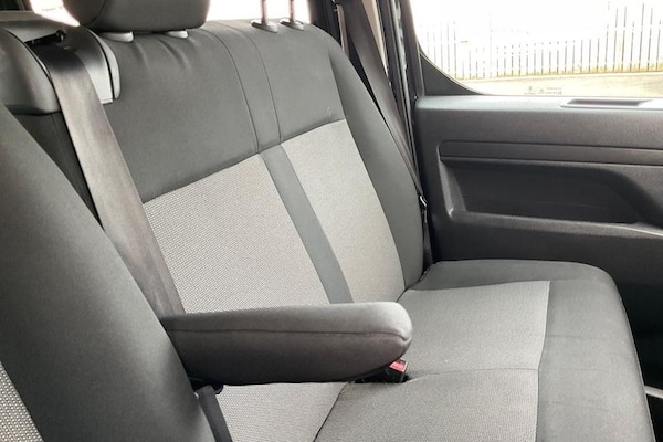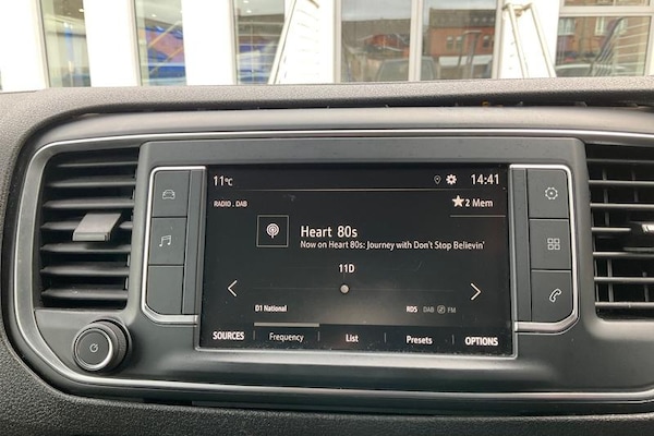 Central facia display - Audio information, Digital clock with automatic RDS time adjustment and outside air temperature with ice warning function, Drive mode selector, Instrumentation - speedometer, rev counter, low fuel gauge warning light, fuel economy gauge and coolant temperature warning light, Multi function trip computer - Trip odometer, vehicle range, average speed and fuel economy, instantaneous fuel economy and driving time, Multi-mode toggle (Eco, Normal, Power), Speed sensitive electrically assisted power steering, Vauxhall connect including Ecall and connected services, Electric adjustable/heated door mirrors, Electric Front windows with one touch up/down facility, Flexible roof mounted aerial, Halogen headlights, Intermittent rear window wash/wipe, Lights on audible warning, reversing light, hazard warning, rear fog light, high level brake light, side repeat indicators, LED daytime running light, Nearside and offside sliding side access door with fixed windows, Side protection mouldings, Two speed windscreen wipers with variable intermittent wipe, Vehicle charging socket, 12V socket in cargo area, 12V socket in saloon area, 3 spoke design steering wheel with satin chrome effect bezel, A4 storage compartment in facia, Body lock seatbelt pretensioner system, Curitiba cloth upholstery, Dual front passenger's seat with underseat storage tray, fixed position bench seat and backrest and padded front head restraint, Floor mounted handbrake lever, Front door