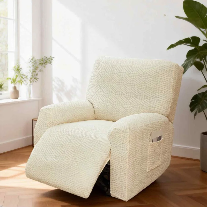 Made of stretch jacquard fabric, exquisite workmanship with dense and smooth short pile which is breathable, anti-wrinkle, no pilling or fading after washing, delicate texture for extra soft and sturdy touch that will not irritating to your skin. Using our universal recliner cover can make your recliner a whole new look which also can create an elegant household elements for your home in an easy way, much better than reupholstering