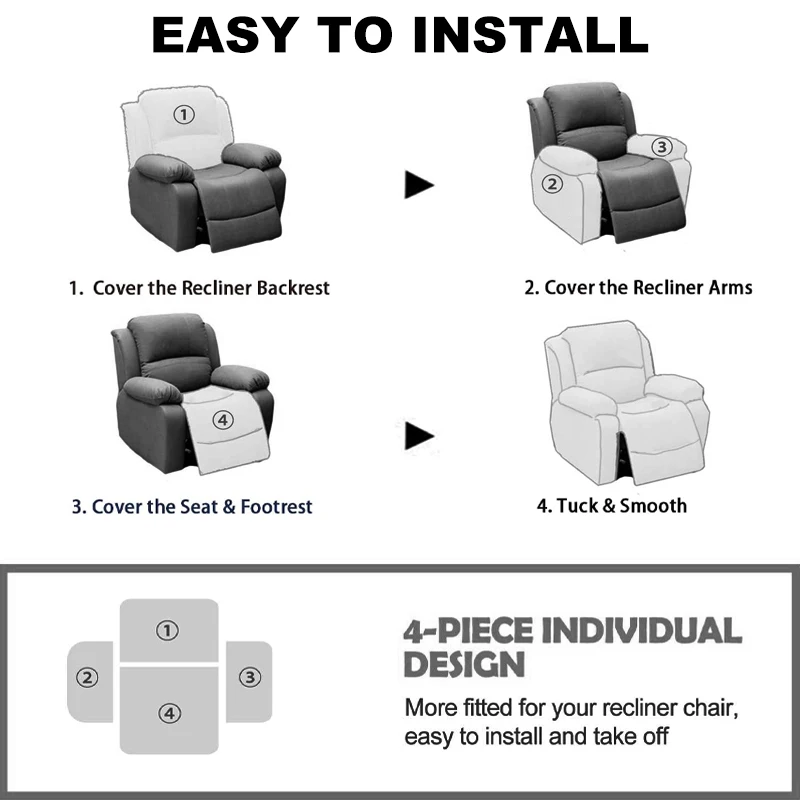 Package Included: Only Recliner chair cover*1Set(4Pcs/Set)
