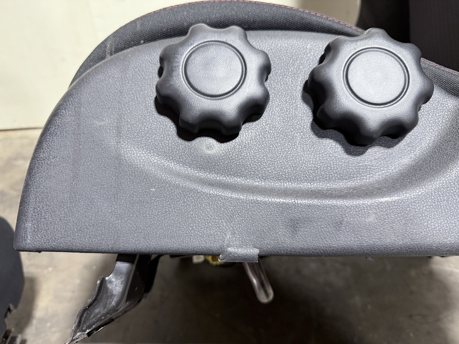 The vehicle sustained impact on the driver-side door, which caused the seat to be compressed/misaligned. The metal support bar between the rails (shown in photos) is bent, and there may be additional internal damage not visible externally. This is also the reason the lower cushion appears wrinkled.