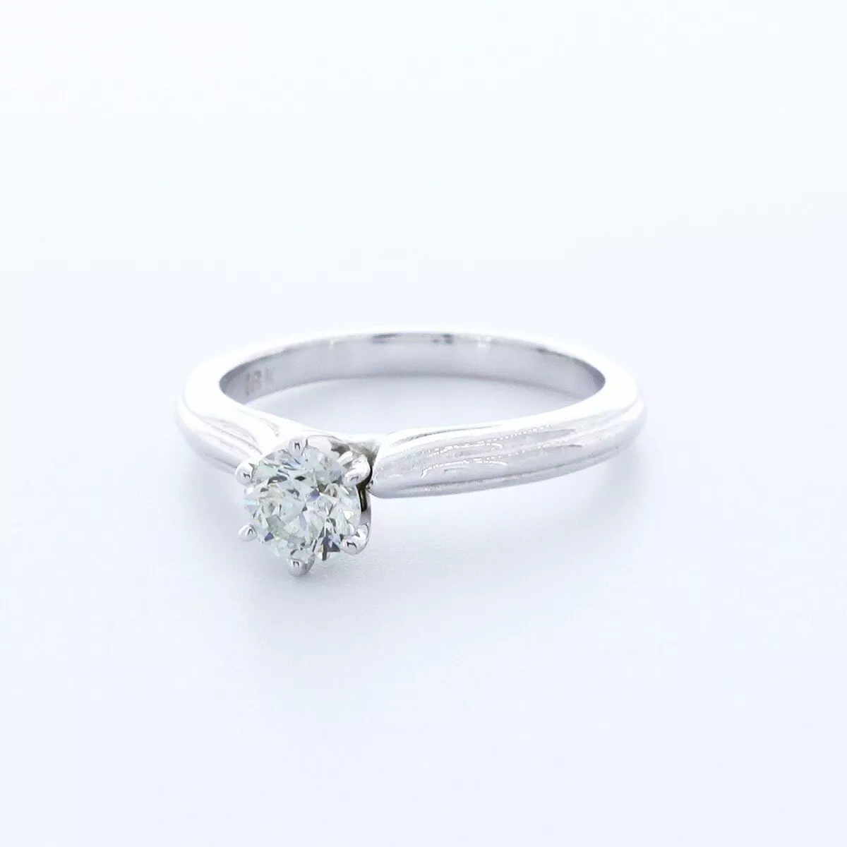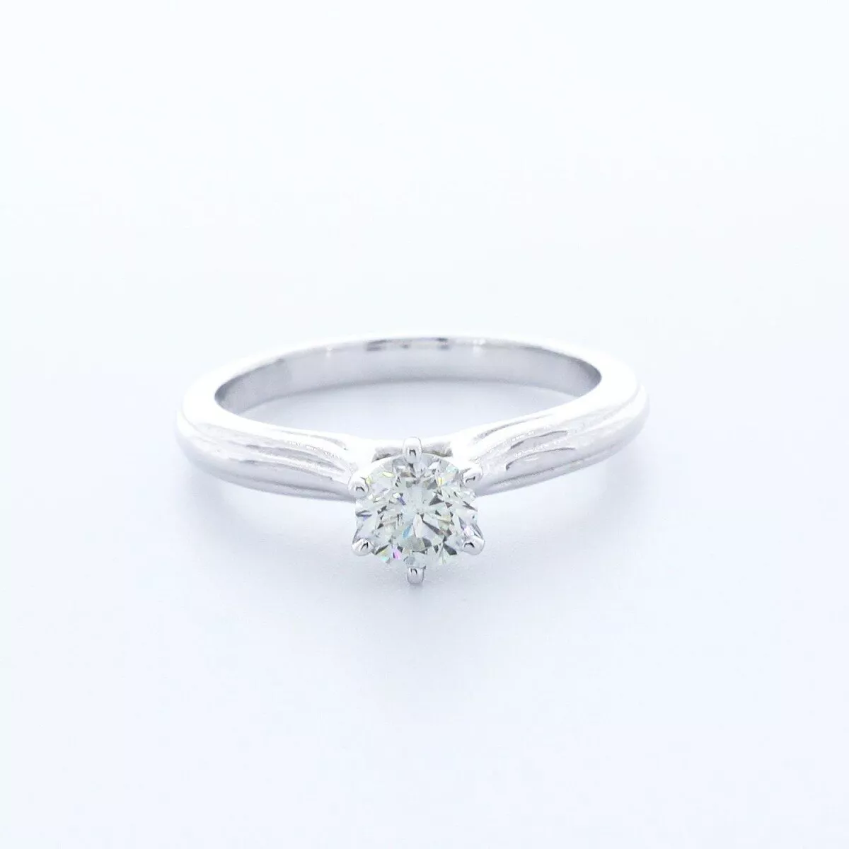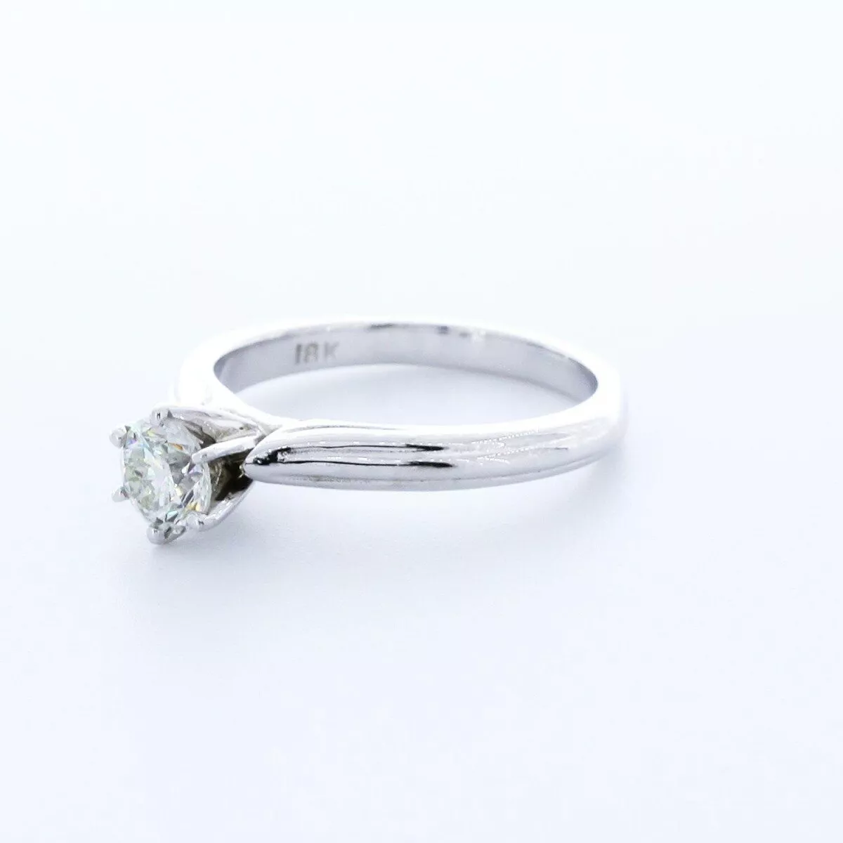 Solid 18K White Gold Solitaire Engagement Ring Classic AGI Cert 0.74 CT Round Lab-Grown Diamond D VS1