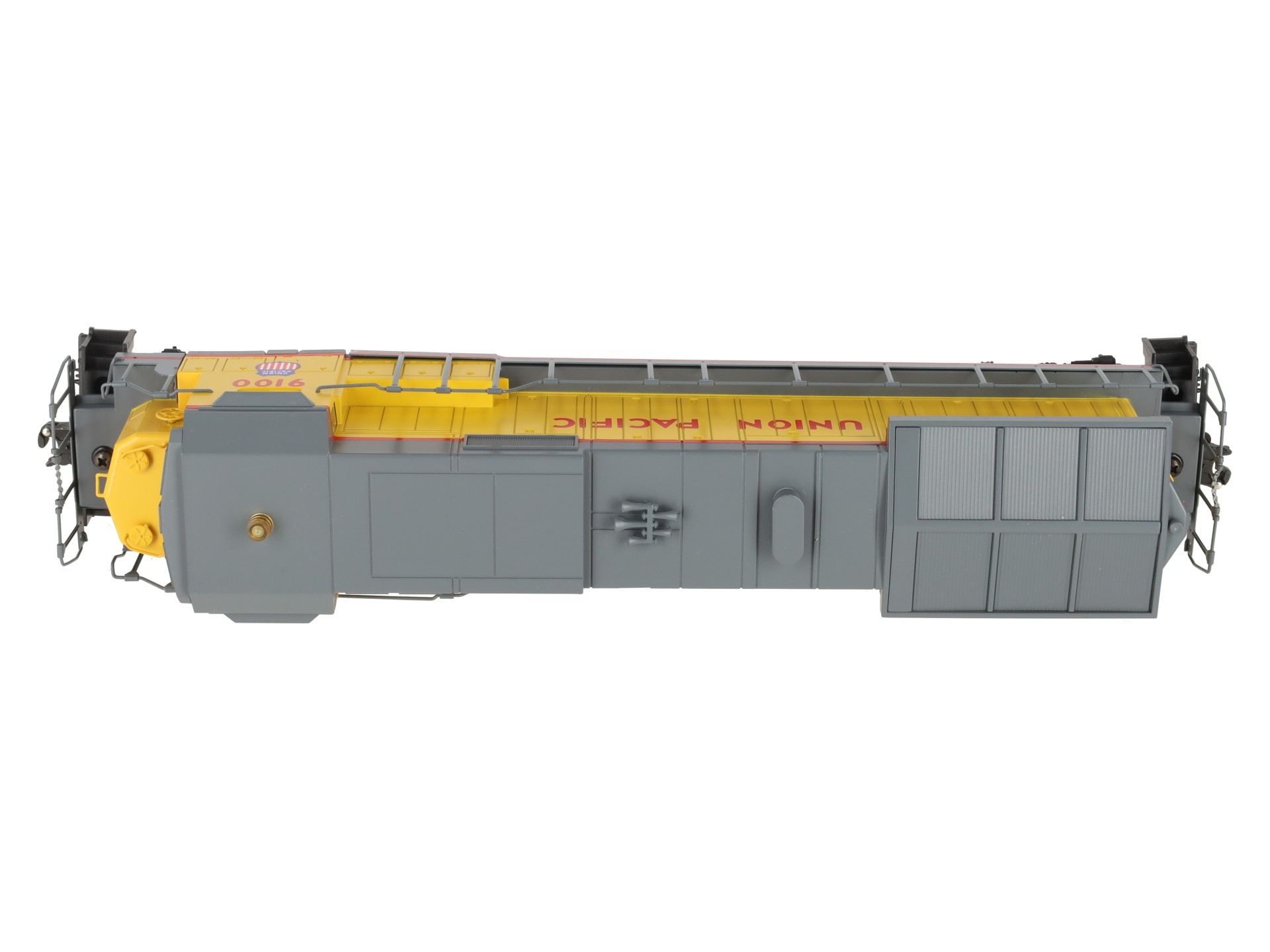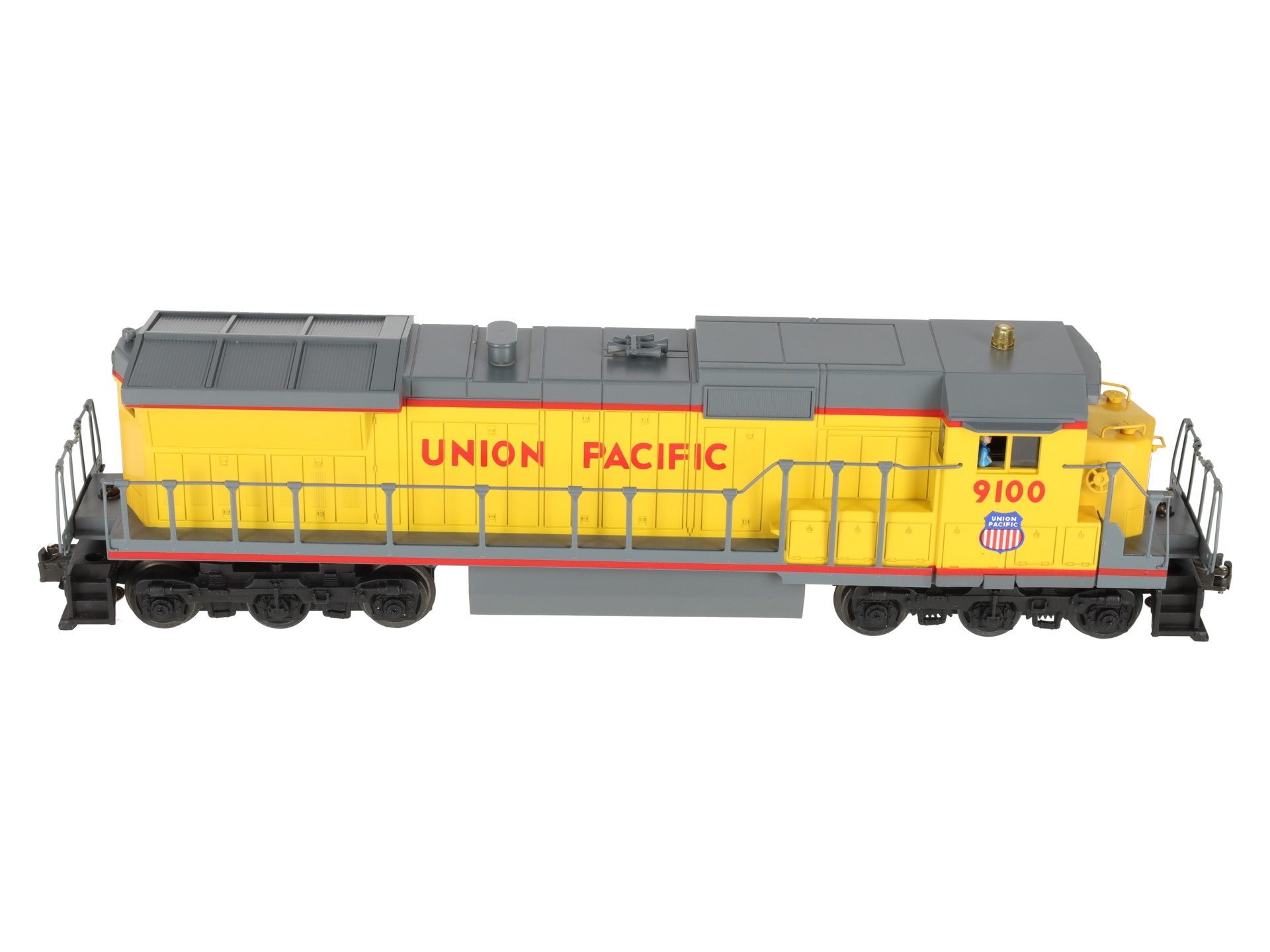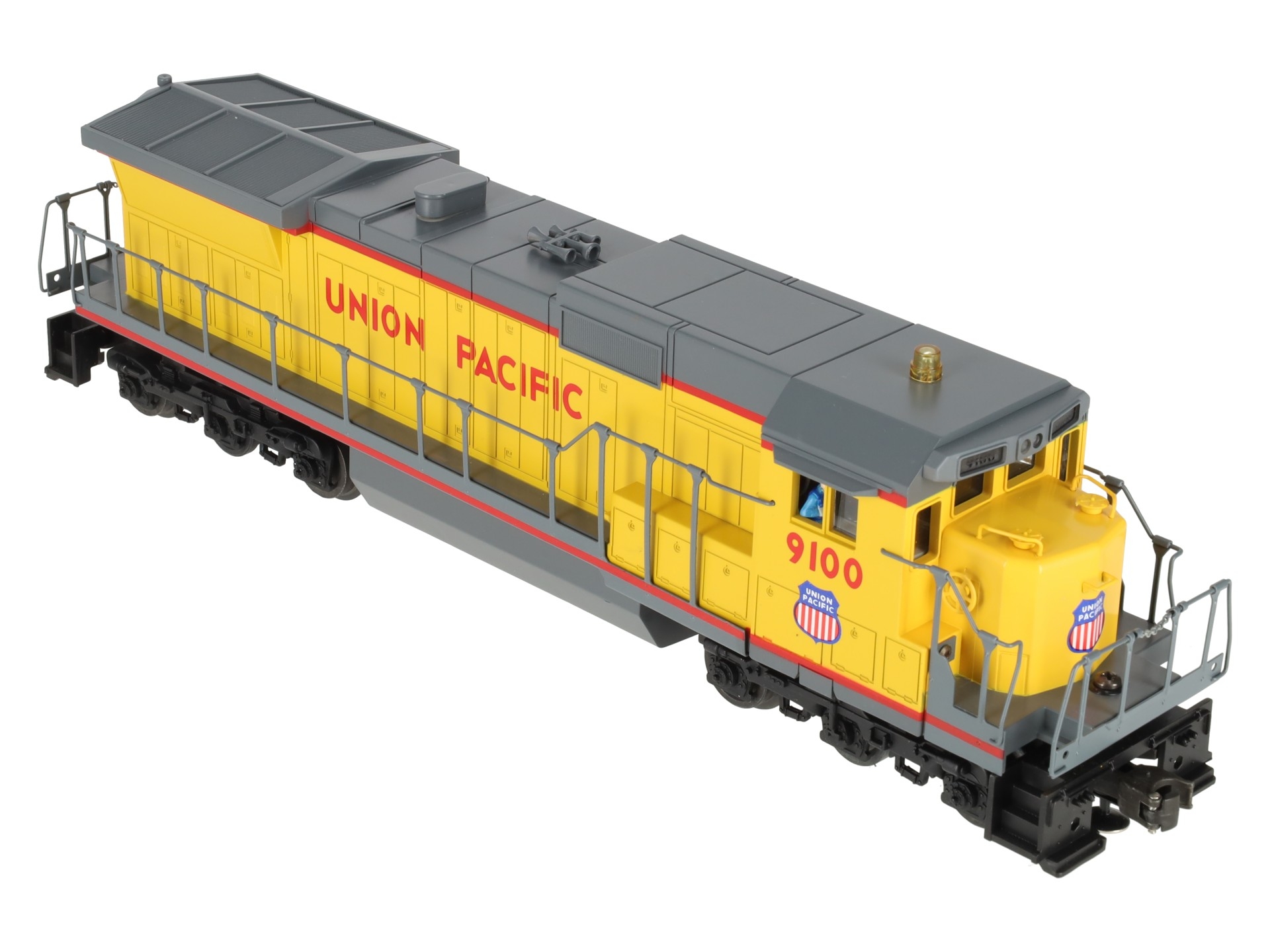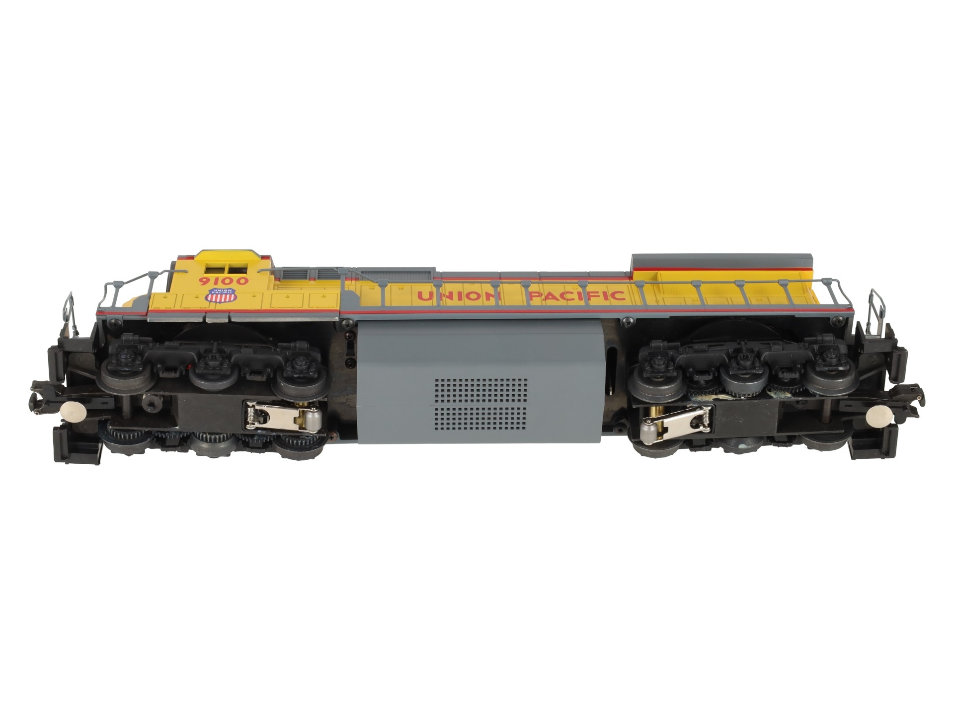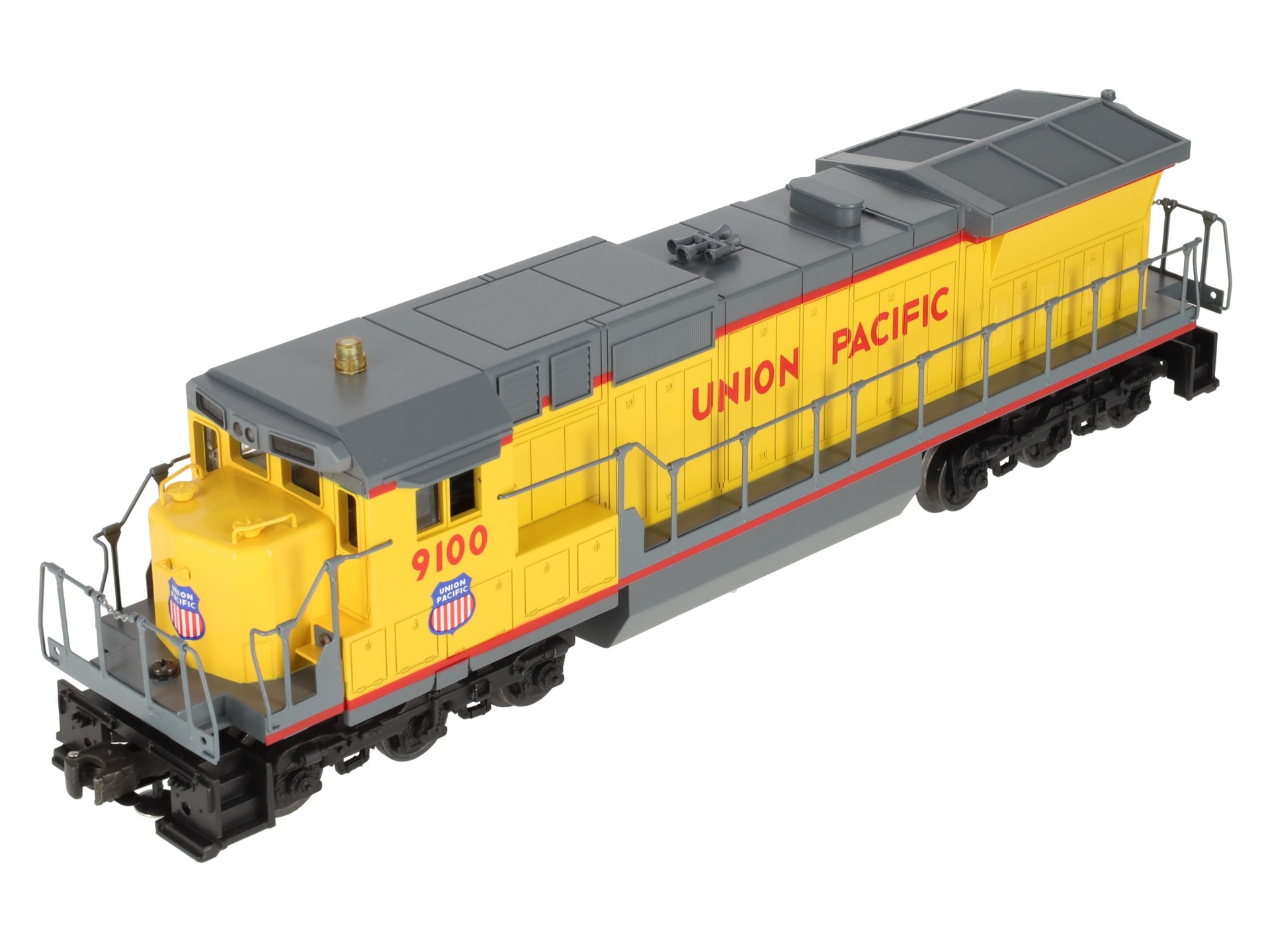 Here is a Lionel 6-18205 O Gauge Union Pacific Dash-8 40C Diesel Locomotive #9100. This is the first Dash 8-40C that Lionel produced back in 1989. Features include plastic body construction, (2) powerful dual motors, 6 wheel die-cast trucks, a flashing warning light on cab, operating knuckle couplers, and an electronic horn.