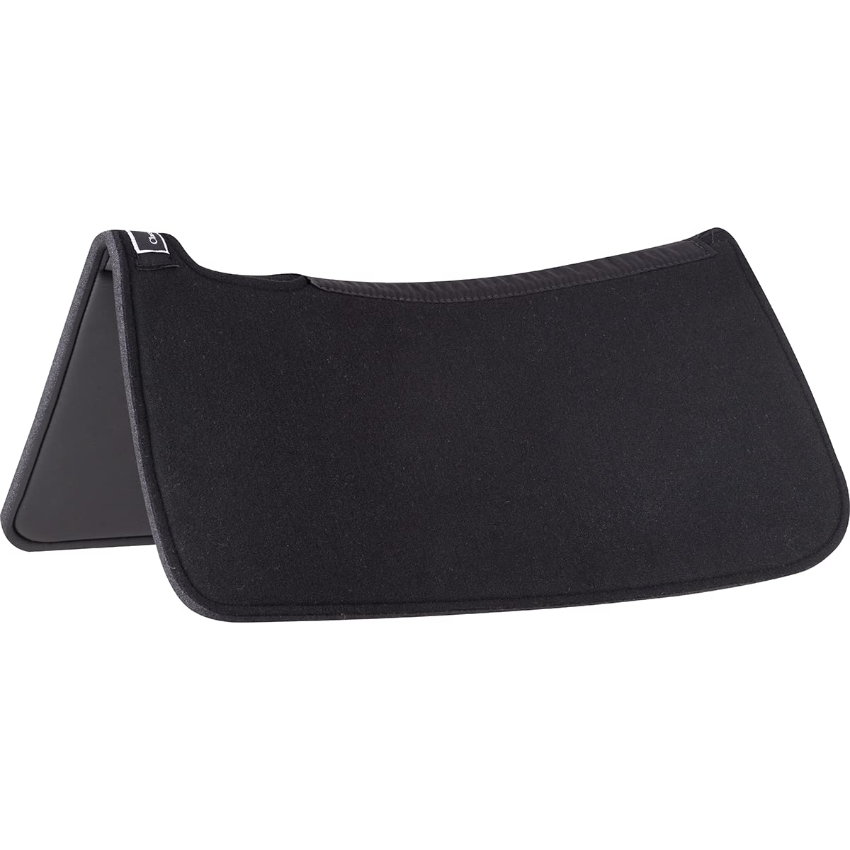 1/8" wool felt top. 1/2" closed cell foam bottom allows the horses back to cool itself. Designed specifically for Reiners, to be used under a Navajo blanket top or alone. Sleek, refined design allows it to protect and support your horse while being discrete under a show blanket. Cut out over withers and contoured to fit your horses back with a split design that allows the pad to move with the horse. Cut out in the cinch area for a closer fit to the saddle. Color: Black.