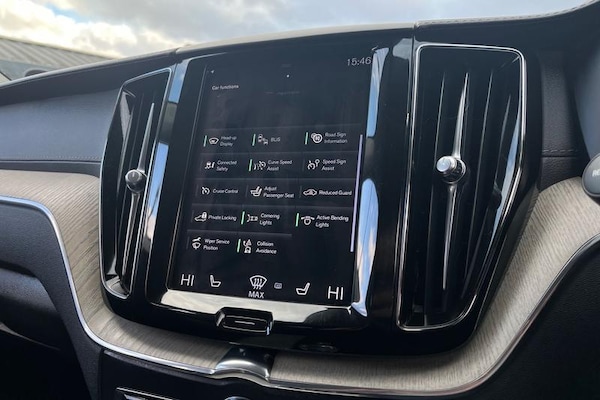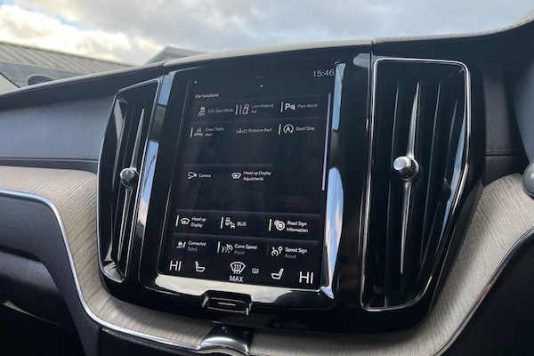12.3 Active TFT crystal driver's instrument display, 9 Touch screen, Adjustable steering wheel force, Bluetooth handsfree system, Drive mode selector, Driver alert control with lane keeping aid, Oncoming Lane Mitigation, Sensus navigation with European mapping and traffic information, Service interval indicator, Speed limiter, Speed sensitive steering, Trip computer, Voice control system, Volvo on call, Active bending headlights with adaptive shadow technology, Adaptive brake lights with high level LED brake lights, Auto dimming interior + exterior mirrors, Automatic headlight levelling system, Body colour bumpers, Chrome deco lower front bumper, Chrome lower side moulding trim, Chrome window surround, Colour coordinated auto folding and heated power door mirrors, Dual integrated exhaust pipes, Electric front+rear windows, Front aluminium tread plates, Headlamp cleaning system, Heated aqua blades, High gloss black grille with chrome inserts, Home safe and approach lighting, Illuminated side steps, Integrated silver roof rails, LED front fog lights with static cornering light function, LED Headlights + Active high beam incorporating daytime running lights, Rain sensor with automatic windscreen wiper activation, Rear wiper, Roof antenna, Roof spoiler, Tinted windscreen, Visible VIN plate, 12V socket in front tunnel console and luggage compartment, 3 spoke leather steering wheel with chrome trim, B Pillar ventilation, Bright metal luggage threshold, Centre armrest storage illumination,