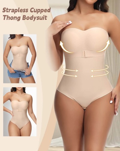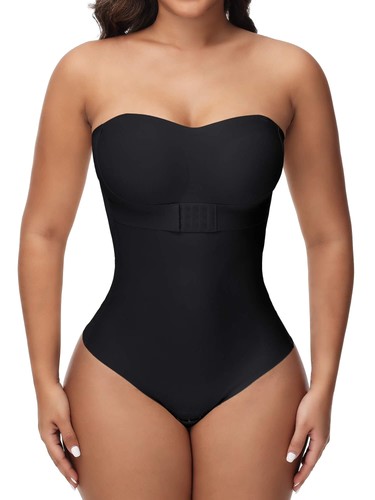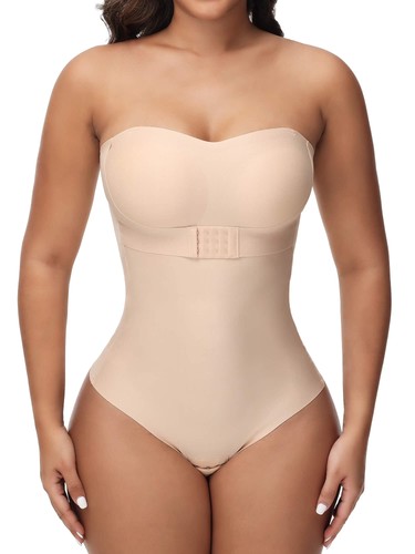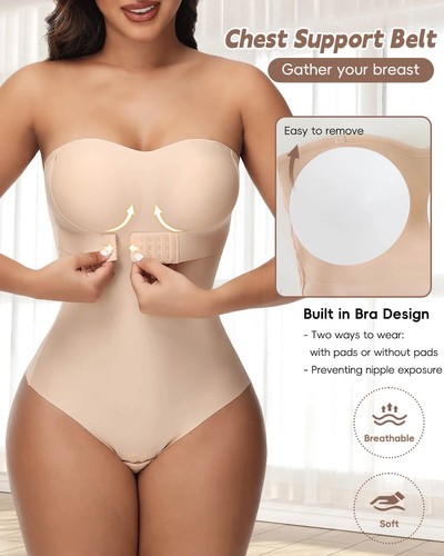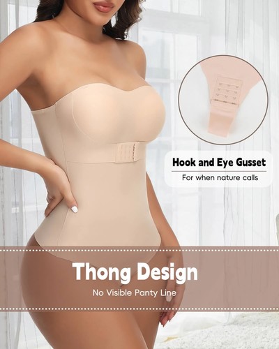 Women Jelly Strapless Body Shaper Thong Bodysuit Built-In Bra Top Tummy Control
