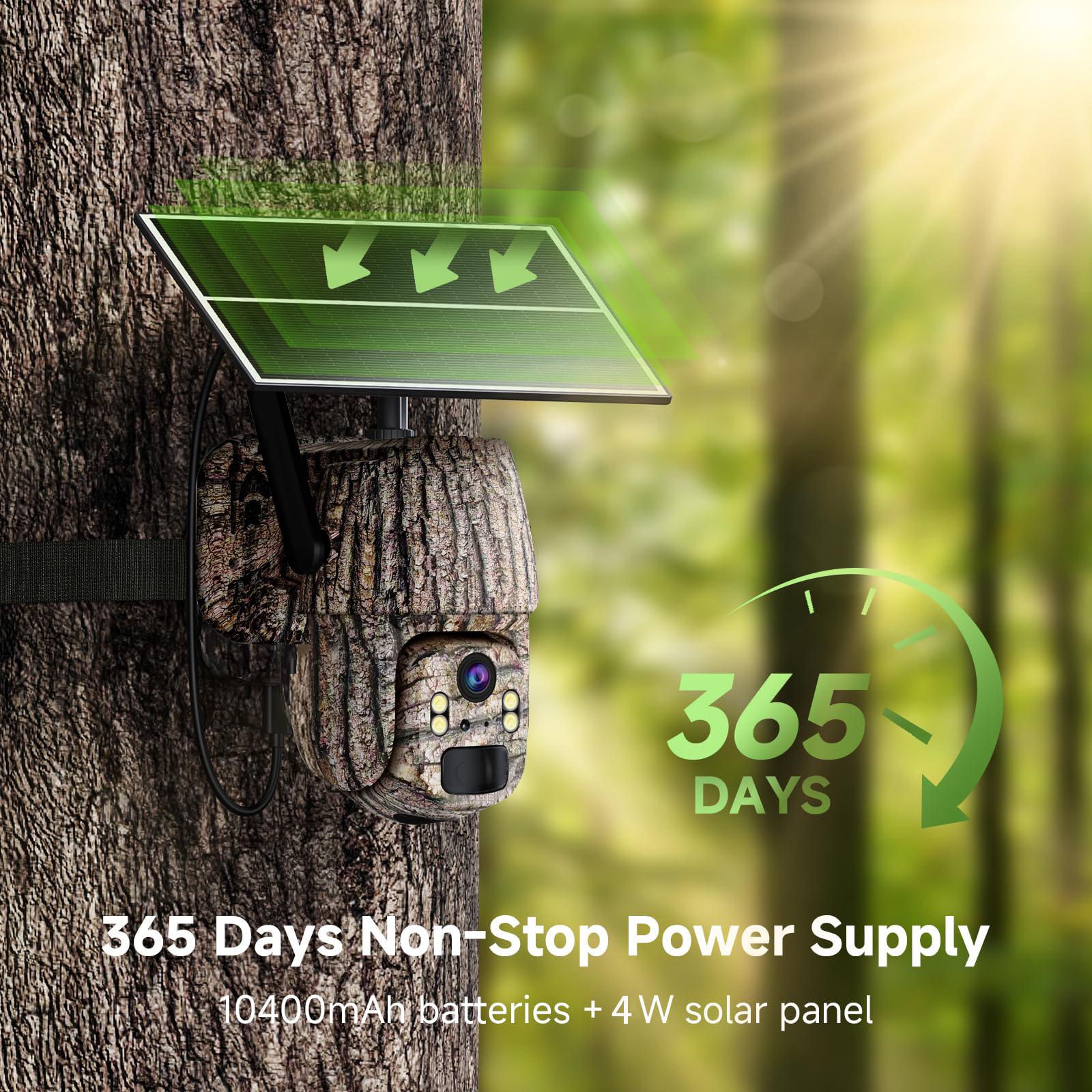 Extended Battery Life - The no-WiFi security camera features a 10,400mAh rechargeable battery and a 5W solar panel, ensuring long-lasting power without the need for frequent recharging.With just 3 hours of direct sunlight, the solar panel can generate enough energy to keep the camera running for a full day, so you never have to worry about losing power.