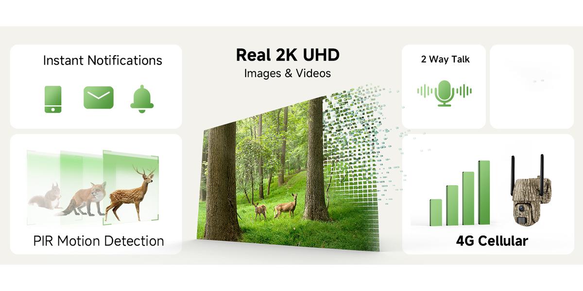 Watch 2K Live Video Remotely - The cellular outdoor security camera supports 2K resolution, allowing you to view sharp, 360° panoramic live footage with no blind spots.Thanks to the 4G connection, you can easily access the camera from anywhere using the mobile app-so even when you're away from home, you can keep an eye on your property and ensure everything is safe.