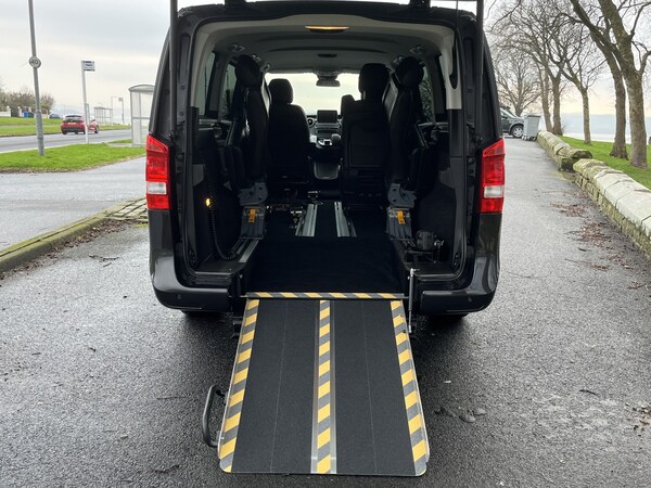 2015 Mercedes-Benz V-Class 2143cc Diesel Wheelchair Accessible Vehicle (WAV) Immaculate condition throughout & valeted professionally to the highest standards, you will not be disappointed. Free Nationwide Mainland Delivery Argyll Vehicles are pleased to offer this 2015 Mercedes-Benz V-Class, converted by GM Coachworks when new, a spacious and comfortable wheelchair accessible vehicle, ideal for individuals who require a practical yet premium mode of transport. This vehicle has had one owner from new and comes with a full Mercedes-Benz service history, demonstrating that it has been carefully maintained. The interior is in beautiful condition throughout, complemented by brand new tailored carpet mats in the driver and passenger footwells. The V-Class accommodates five people plus a wheelchair user, with access provided via a rear wheelchair ramp. The wheelchair position is secured using an Unwin wheelchair occupant restraint system, a trusted solution widely used within the mobility industry for safe and stable travel. Before sale, the vehicle will be serviced and receive a fresh 12-month MOT, ensuring it is ready for use and providing additional peace of mind for the new owner. Other features designed for comfort and convenience include: Two remote keys 12 Months Warrantywise Platinum Warranty 12 Months Breakdown Cover Satellite navigation 360 overview camera Heated front seats and rear climate control This V-Class has been professionally valeted, and the wheelchair ramp has been professionally relaid with new grip tape for safety and ease of use. It is a premium example, carefully maintained, and ready to provide a reliable, comfortable, and safe journey for its next owner. Call Kris Argyll Vehicles Ltd Quality Assured -