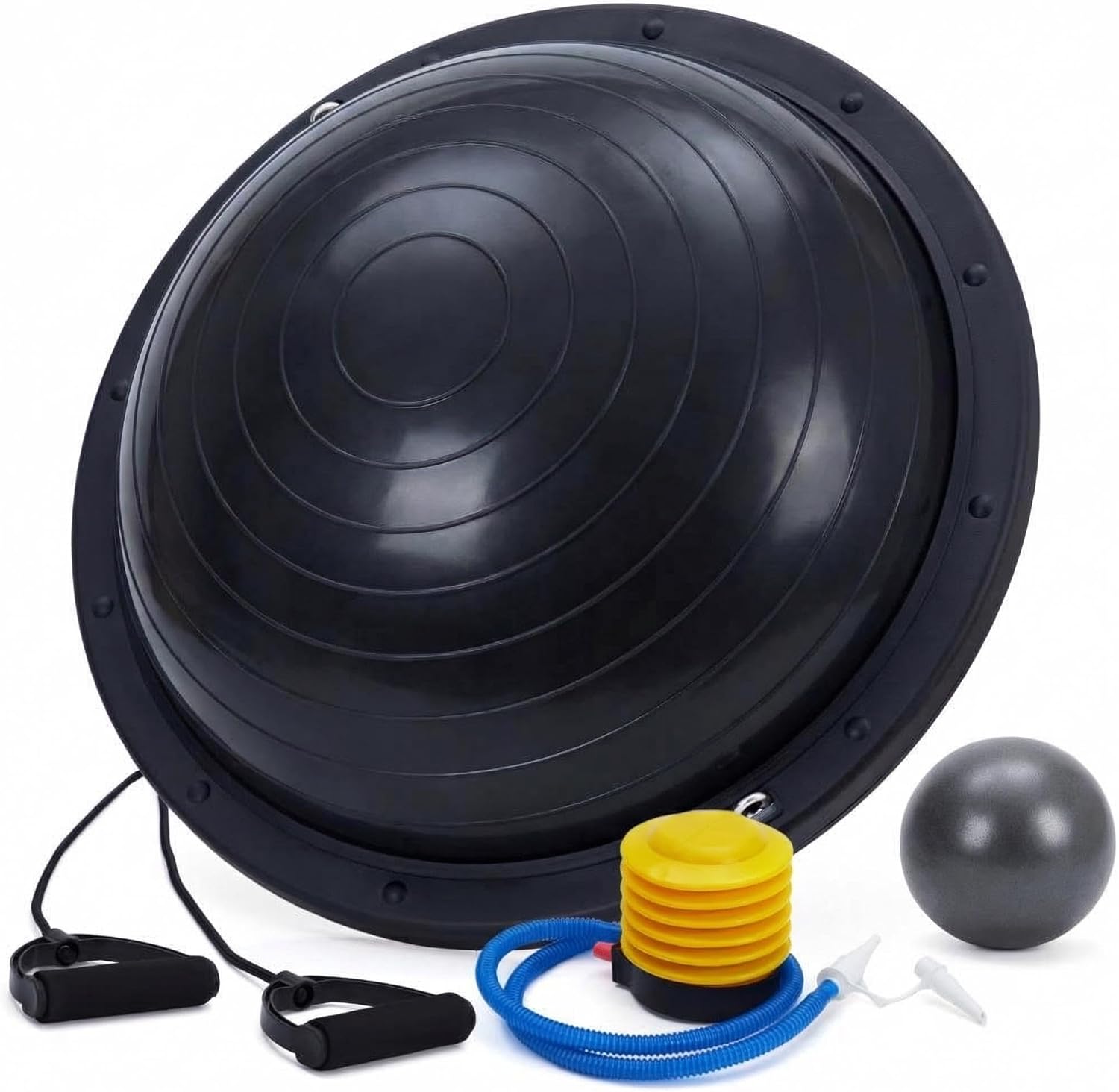 【Schneller Aufbau & langlebige Qualität】Mit der mitgelieferten Pumpe ist der Ball in wenigen Minuten aufgeblasen (ca. 20 cm Höhe). Das robuste Luftventil verhindert Leckagen – für langanhaltende Stabilität. Kein lästiges Nachpumpen, nur effizientes Training!