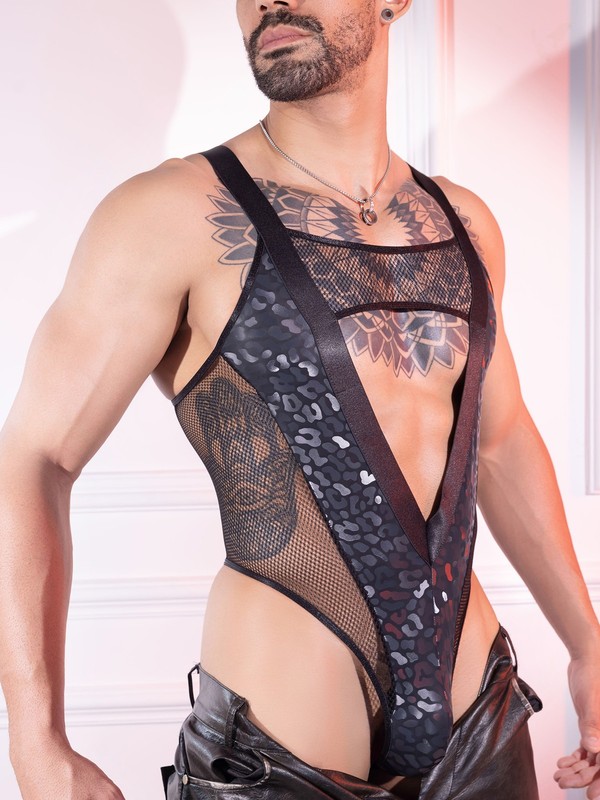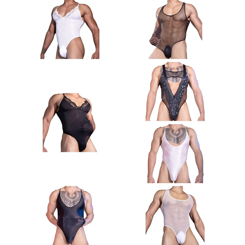 Men One-piece Hollow Out Netted Bodystockings Lingerie Halter Neck Sleeveless See-through Stretchy Bodysuits Nightwear.