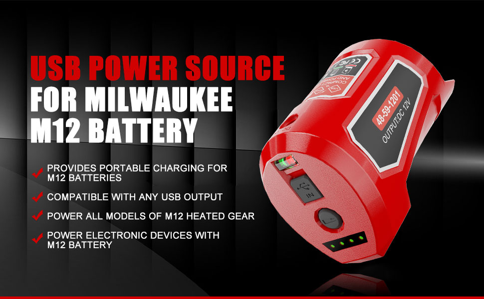 M12 USB Power Source Adapter Features:Replaces Milwaukee 49-24-2310 48-59-1201 lithium battery USB adapter.