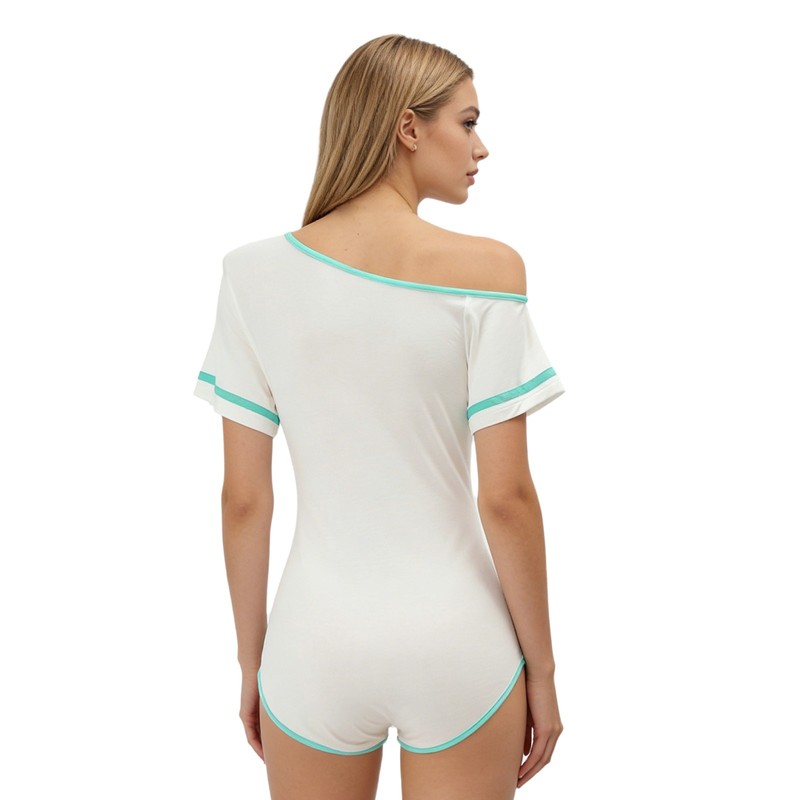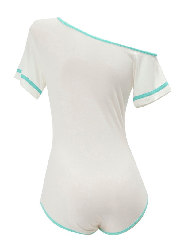 The off-shoulder and short-sleeve design is fashionable and contemporary, adding a flirty and alluring element to the outfit.