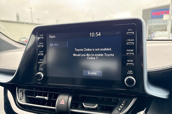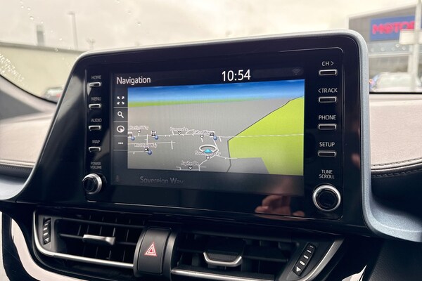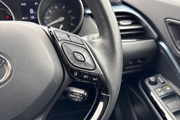 Available now from Motor Match Chester, with an amazing service history present, having been serviced at 15371, 19986, 26465 and 26829 miles. This superb Toyota C-HR Design comes finished in the sleek Eclipse Black metallic paint, which looks fantastic paired with the 18in diamond-cut alloy wheels. At the front of the vehicle youll find the automatic LED headlights and rain-sensing wipers, offering superb visibility. The Toyota also benefits from electrically adjustable, heated and power-folding door mirrors. The interior offers plush full leather upholstery, with sports seats offering excellent support. Manual seat adjustment is provided, and Isofix mounting points can be found on the outer rear seats. The C-HR is plenty spacious throughout, offering plenty of legroom for passengers, and a roomy boot too. The front seats are heated, and dual-zone climate control is also provided to keep all passengers comfortable. This Toyota also boasts an amazing media system, providing access to DAB radio, Bluetooth interface and USB connectivity, so youve got plenty of choice when it comes to music. Youve also got the reliable satellite navigation system on board, along with the ability to connect smartphones to use Apple CarPlay and Android Auto! This car is equipped with cruise control and speed limiter which come in handy for motorway drives, while the front and rear parking sensors and rear view camera alert you to any obstructions when reversing! This vehicle is compliant...
