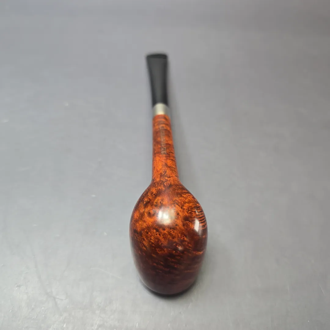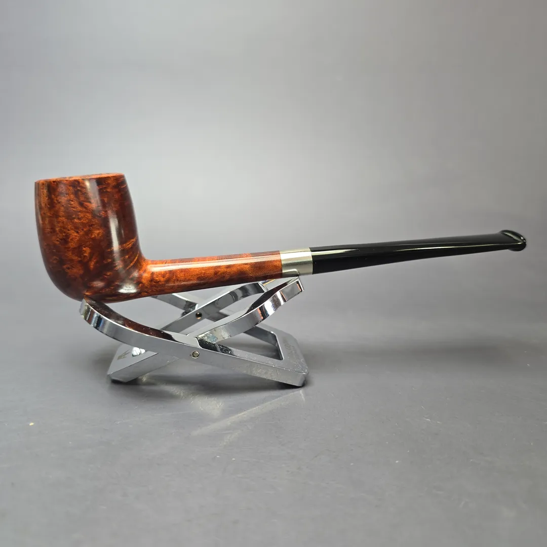After the immense success of his Bing Crosby inspired billiards, Bruno Nuttens decided to create a series of pipes of the same basic shape, but with slightly scaled down proportions. These would become Nuttens’ “Mini Bing” pipes. The Mini Bing, as seen here, is even more svelte and lightweight than its bigger brother, while still maintaining ample chamber capacity for a good bowl, especially when out on the town.
