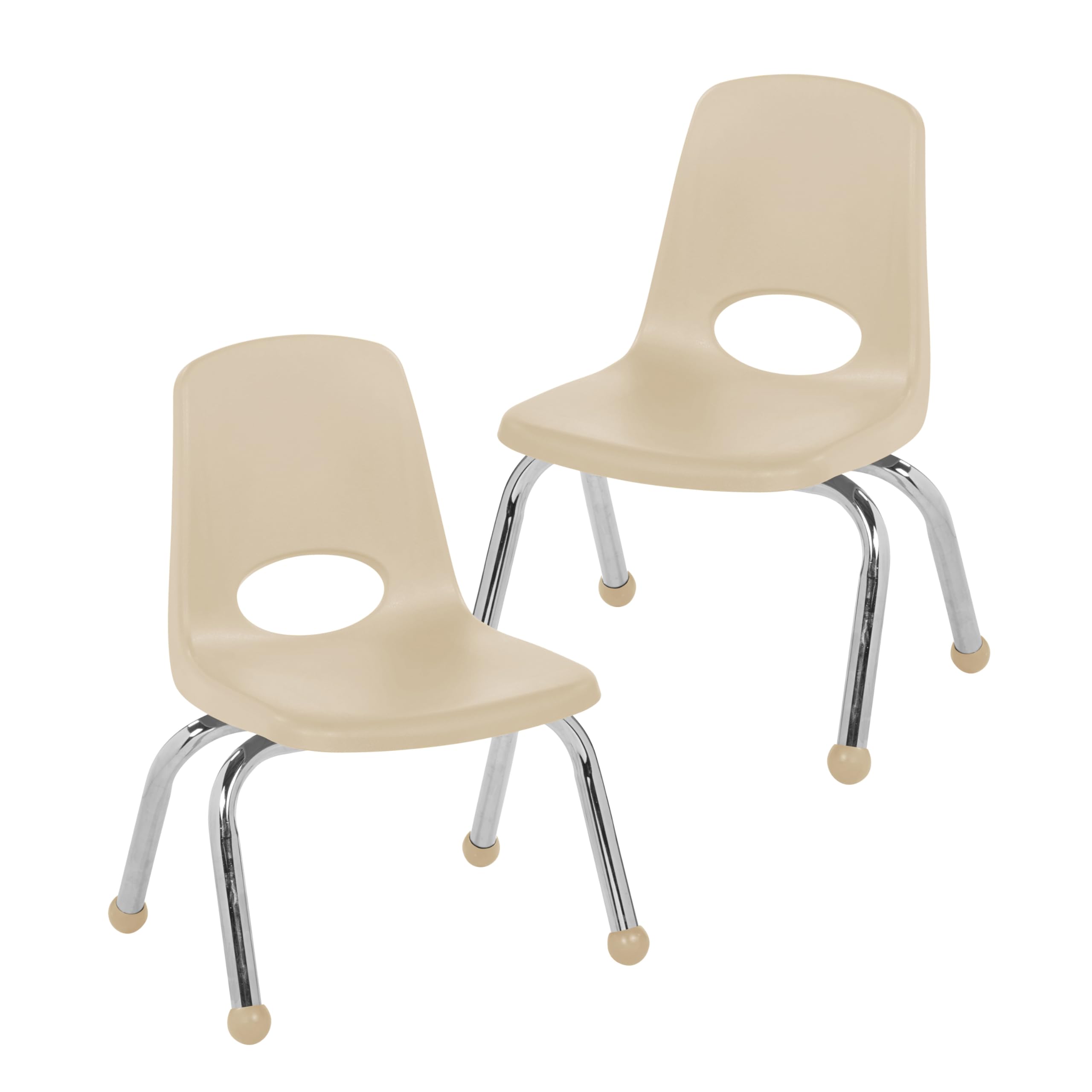 FDP 10" School Stack Chair,Stacking Student Seat with Chromed Steel Legs and Ball Glides for Preschool, Classroom or Homeschool - Sand (2-Pack), 15409-SD