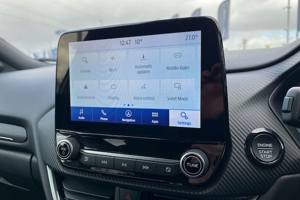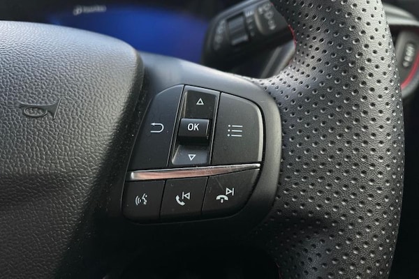 18in Alloy Wheels - 5-Spoke - Matt Black Machined Finish, ABS - Anti-lock Braking System, Acoustic Laminated Windscreen, Active Grille Shutter, Automatic Dimming Rear View Mirror, Automatic Headlights with Rain-Sensing Wipers and Auto High Beam, B&O Premium Audio System and Ford SYNC 3 Navigation, Carbon-Look Interior Deco Spears, Centre Console - Premium with Openable Stowage Area with USB Connectivity - 2 Cupholders and 12v Power Point, Courtesy Lights - Ambient LED Courtesy Lighting - Single Colour, Cruise Control with Intelligent Speed Assist, Drivers Manual 4-Way Seat Adjustment with Manual Lumbar Adjust, ESC - Electronic Stability Control and Hill Start Assist, Ecoboost Hybrid Tailgate Badge, Electric Windows - Front and Rear, Electronic Air Temperature Control - EATC, Emergency Brake Warning - Automatic Hazard Warning Lights, First Aid Kit Strap, Ford MegaBox Extended Bootspace, Ford Power Starter Button, Front Bumper - Unique ST-Line Sport Design - Body Colour, Front Floor Mats, Front Fog Lights, Front Seats - Sports Style, Full Digital 12.3in Instrument Cluster, Gear Knob - Aluminium, Handbrake - Black Sensico Trimmed with Stitching, Headliner - Deluxe, Instrument Panel - High Level, Intelligent Speed Assistance, LED Rear Lights, Lane Keeping Aid with Lane Departure Warning, Large Rear Spoiler - Body Colour with Centre High Mounted Stop Light, Locking Wheel Nuts, Lower Bodyside Moulding - Body Colour, Passenger 4-Way Seat with Lumbar Adjustment, Post Collision Braking,