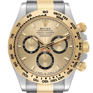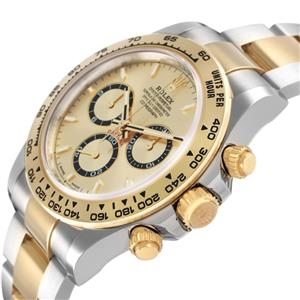Stainless steel and 18K yellow gold case 40.0 mm in diameter. Special screw-down push buttons. Triplock winding crown protected by the crown guards. Two 18k yellow gold pushers operate the chronograph functions. Rolex logo on the 18k yellow gold crown. |