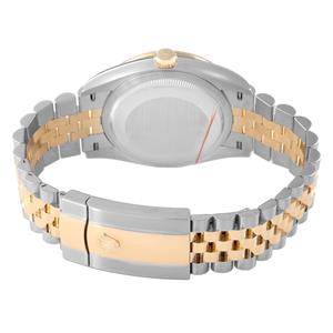 Stainless steel and 18K yellow gold oyster case 36.0 mm in diameter. Rolex logo on 18K yellow gold crown. |