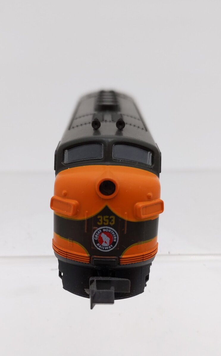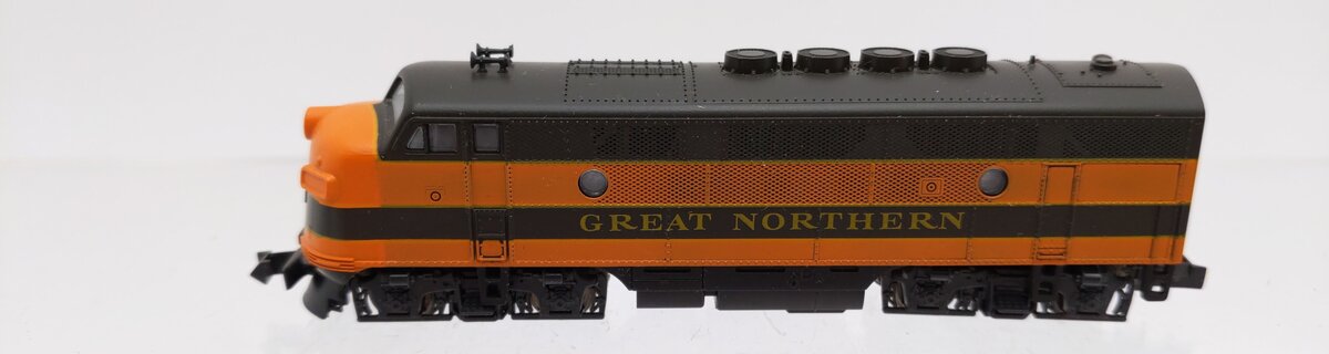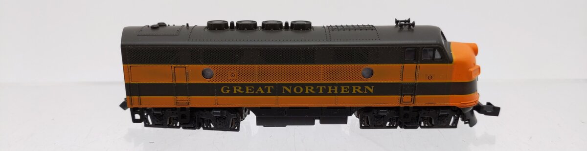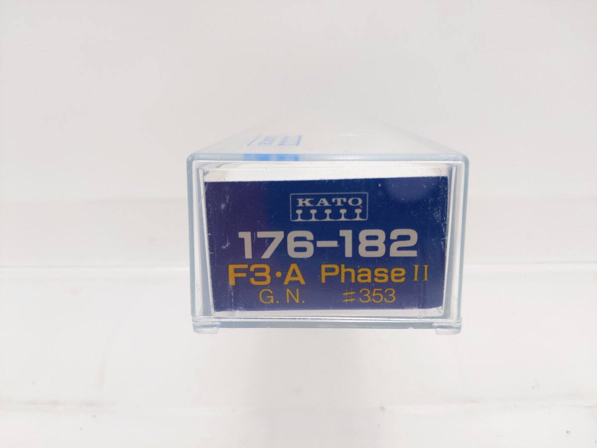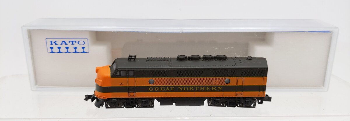 Here is a Kato 176-182 N Scale Great Northern F-3 A Unit Diesel - Phase II. Features include a powerful motor, plastic construction, plastic trucks, plastic couplers, and metal wheels and axles.