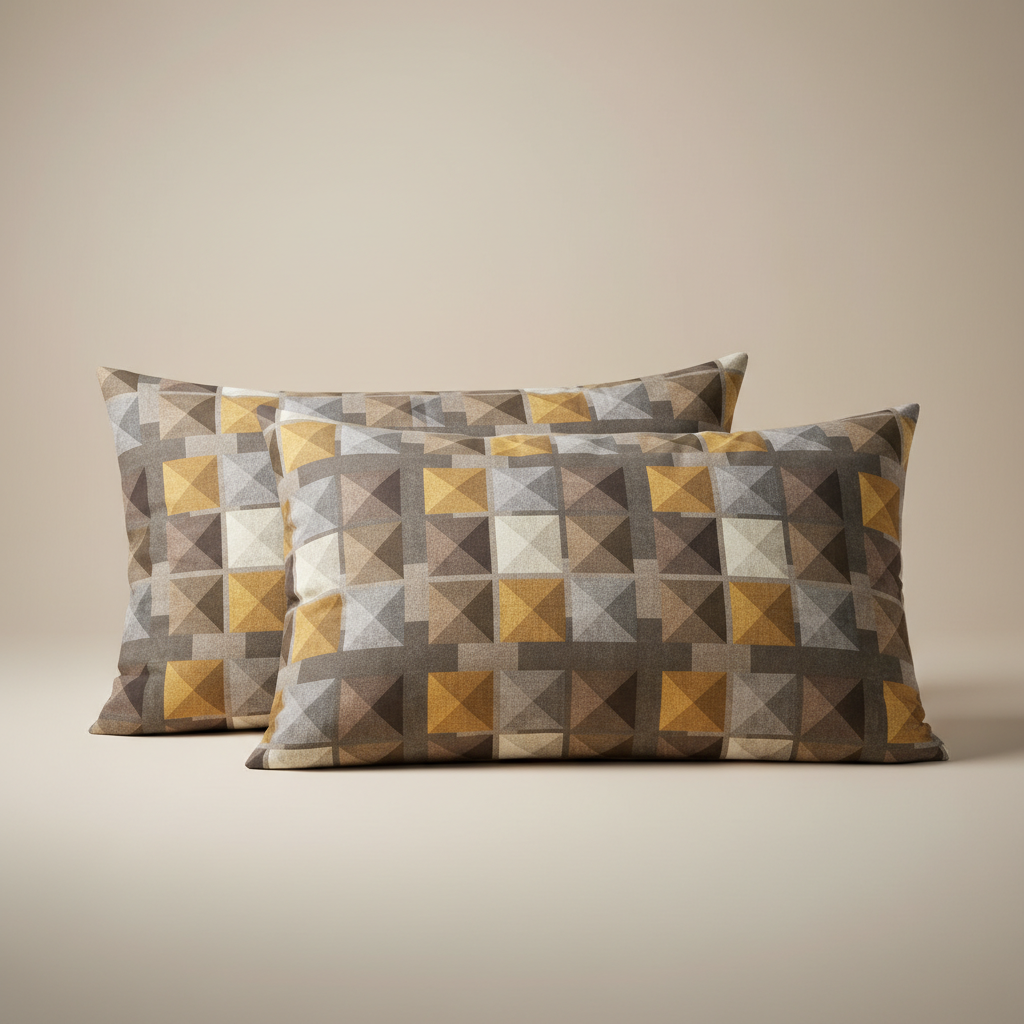 Carrara è celebre per la cura maniacale dei dettagli. La finitura a 3 volani non è solo un vezzo estetico, ma richiede una lavorazione tessile superiore che garantisce la tenuta della forma nel tempo. Il motivo Geometrico gioca con le sfumature del marrone e del bruciato, rendendo le federe versatili e facili da abbinare a lenzuola bianche, marrone o argento.
