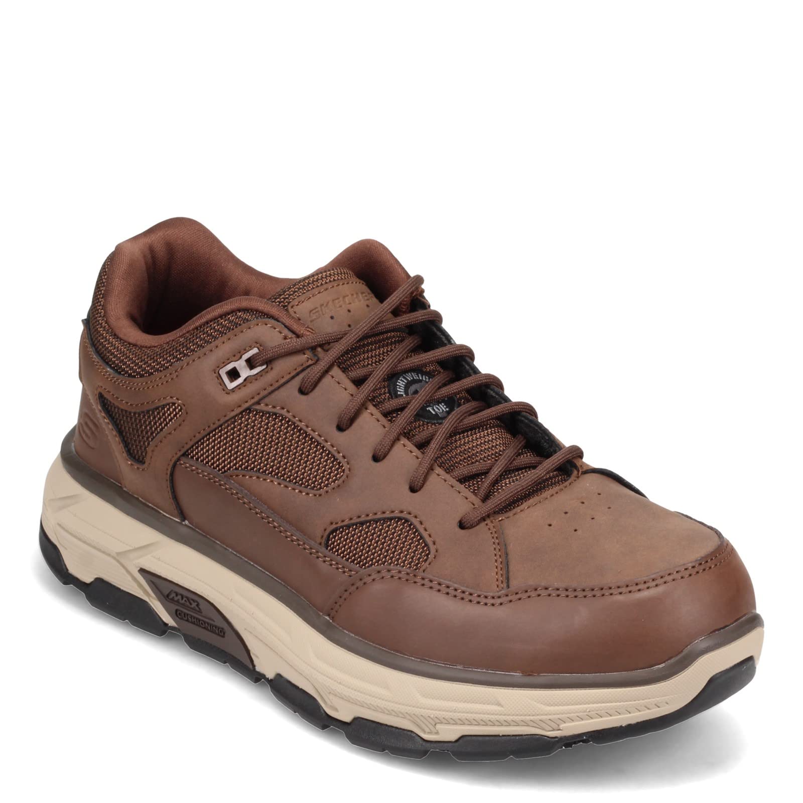 DescriptionFeel cushioned, energizing support with every step when you wear the SKECHERS Work Max Stout ST Alloy Toe 9520949 sneaker! This work shoe has the durable construction, safety toe protection, and underfoot support to keep you going all workday long in comfort and stability! Lace-up work sneakers feature a lightweight alloy toe that meets ASTMF2413-18 safety standards. Features durable leather and synthetic mesh fabric upper with textured synthetic overlays, and textile panels for added structure and breathability. Signature logo accents throughout. Sturdy work shoe has removable, Air-Cooled memory-foam insole that provides long-term cushioning and bounce. Ideal for walking or standing for long periods of time. Durable toe and heel bumpers for extra protection. Padded collar and tongue for added comfort while in motion. Soft textile lining offers breathable comfort. Full-length comfort insole with memory foam cushioning that provides all-day underfoot support. Max Cushioning midsole for exceptional support and added cushioning. Slip-resistant rubber outsole provides oil resistance, and excellent grip and traction, meets ASTMF2913-19 safety standard. Style number: 200045-BLK (Black)200045-BRN (Brown). Imported. Weight of footwear is based on a single item, not a pair. Measurements: Weight: 1 lb 4 oz Product measurements were taken using size 9, width D - Medium. Please note that measurements may vary by size. Weight of footwear is based on a single item, not a pair.