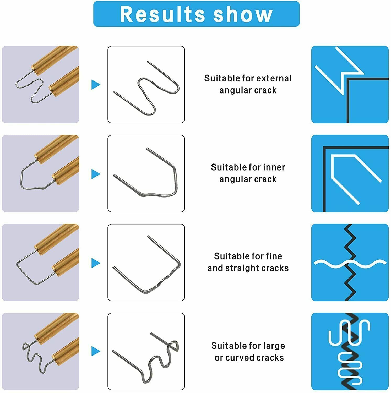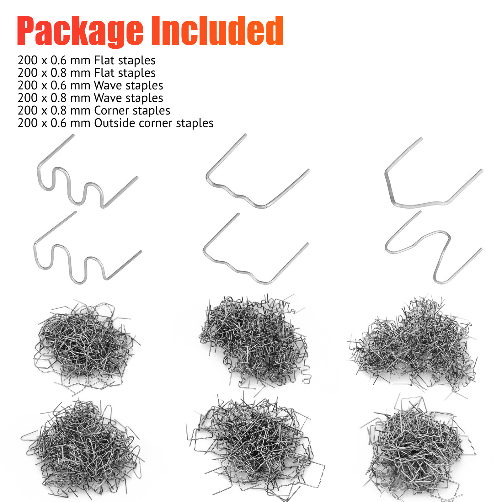 - ✨1200 Hot Staples of 6 Types: 200X 0.6mm flat staples, 200X 0.8mm flat staples, 200X 0.6mm wave staples, 200X 0.8mm wave staples, 200X 0.6mm outside corner staples, 200X 0.8mm outside corner staples.