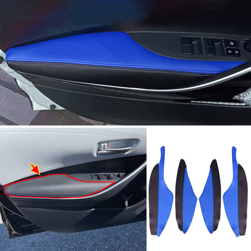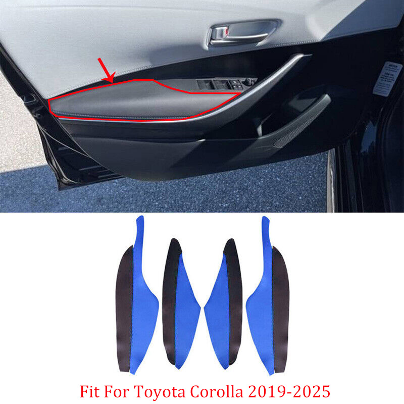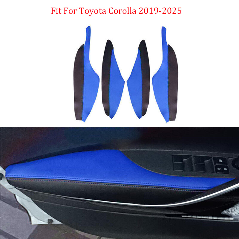 Leather Blue&Black Interior Door Armrest Cover 4pcs For Toyota Corolla 2019-2025